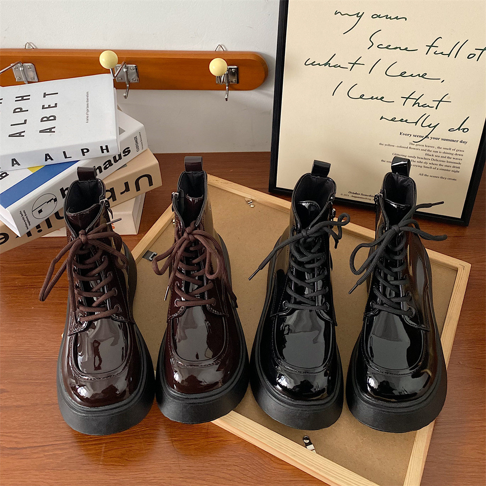 유럽 마틴 부츠 여자의 2022 새로운 가을과 겨울 두꺼운 바닥 증가 영국 스타일 작은 모든 일치 다크 브라운 발목 부츠