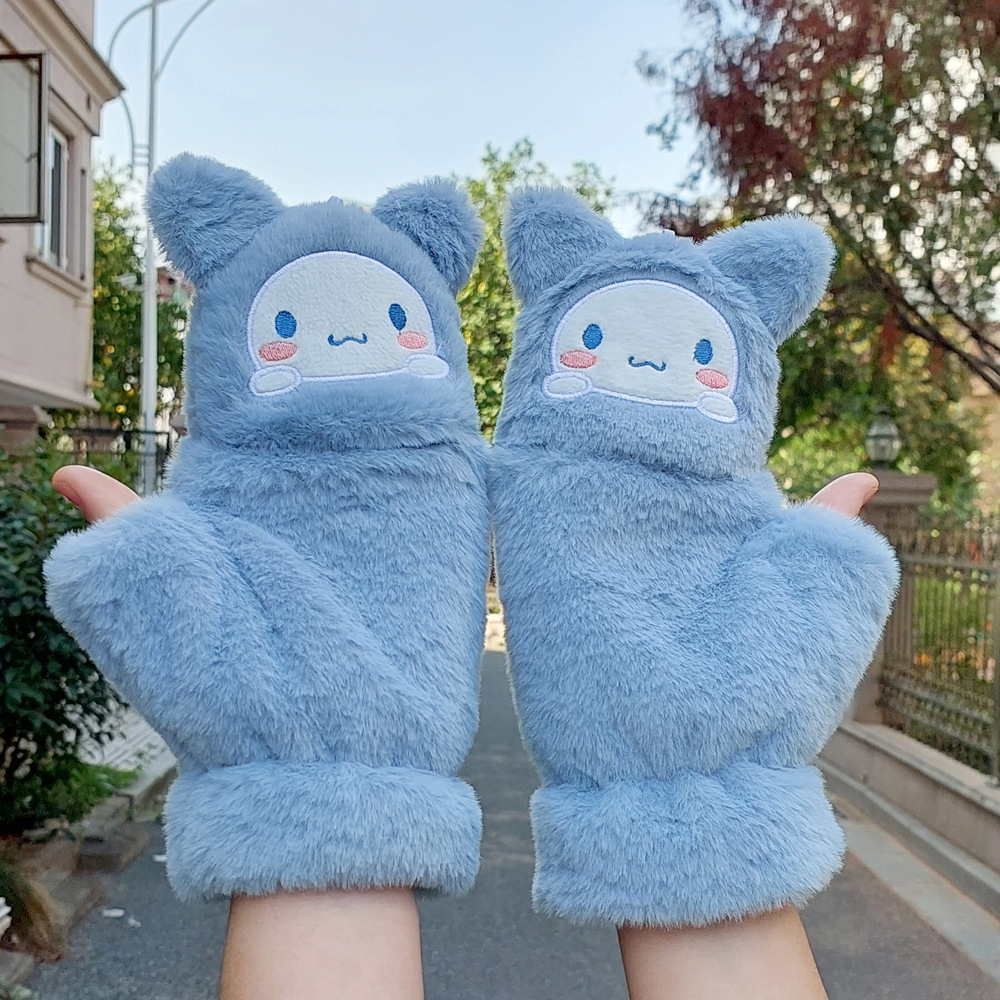 가을과 겨울 봉제 귀여운 Yugui 개 학생 쓰기 더블 레이어 두꺼운 따뜻한 반 섹션 여성용 플립 커버 장갑