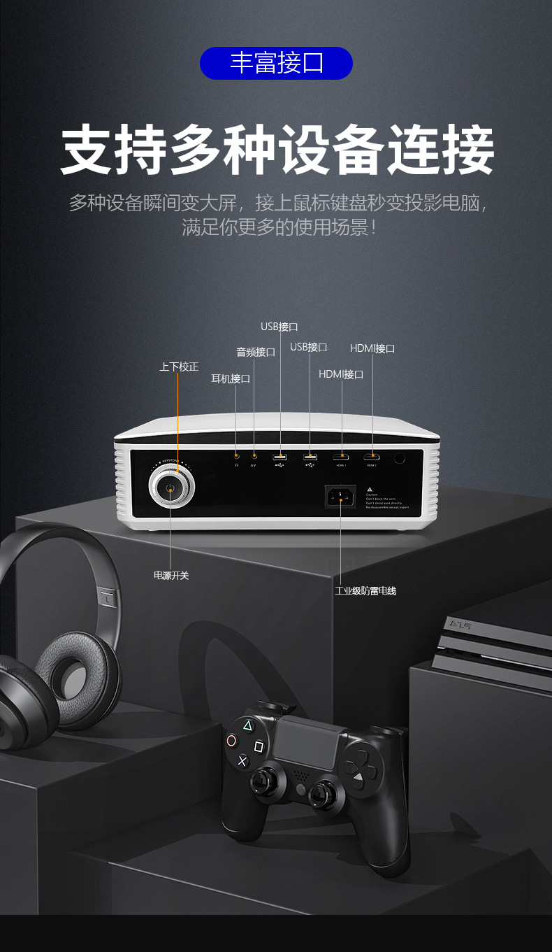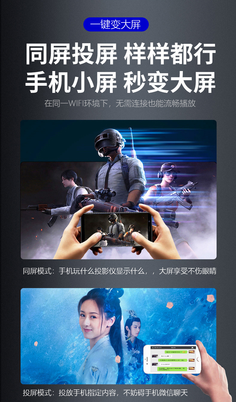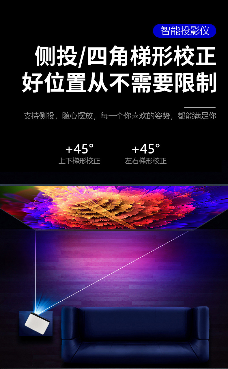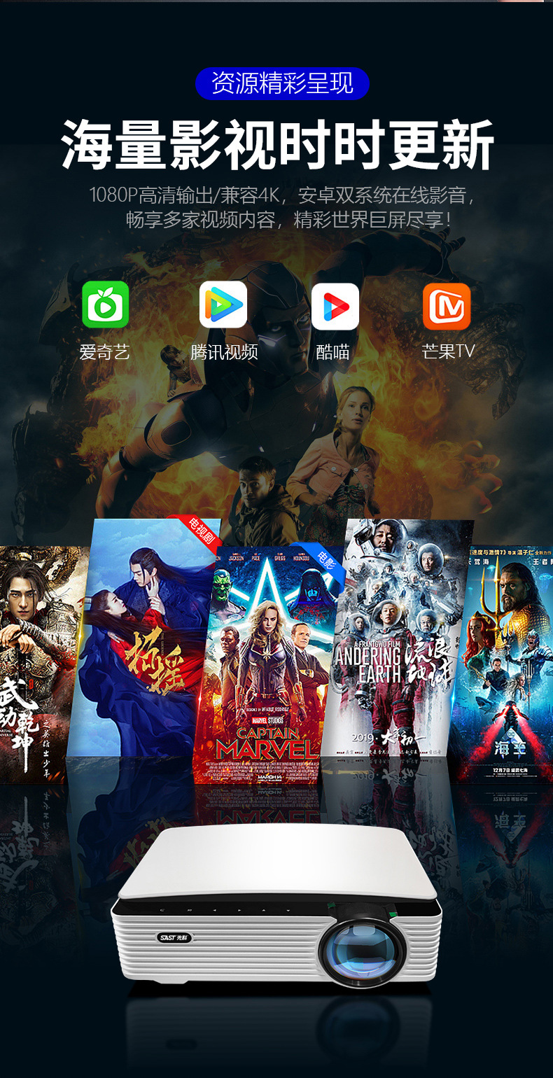 Xianke Z6 프로젝터 홈 프로젝터 사무실 울트라 고화질 소형 휴대 전화 와이파이 통합 홈 시어터