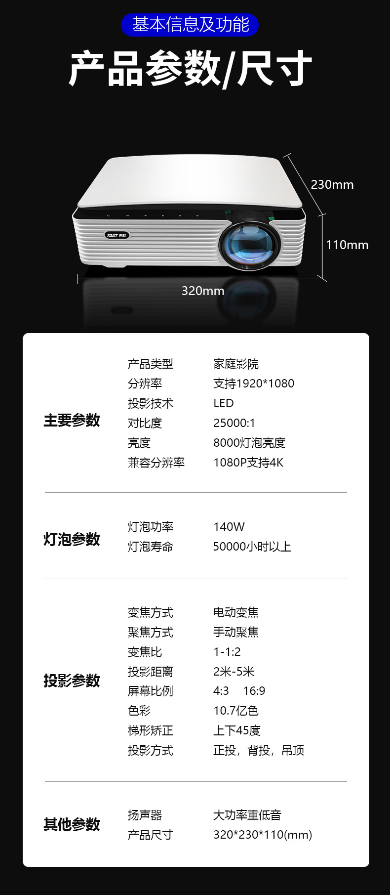 Xianke Z6 프로젝터 홈 프로젝터 사무실 울트라 고화질 소형 휴대 전화 와이파이 통합 홈 시어터스토어 가기