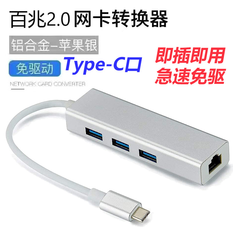 • Type-C 100 메가바이트 네트워크 카드 + USB2.0 * 3 알루미늄 합금 실버 (봉지)