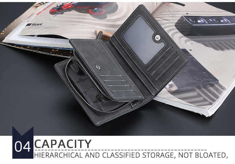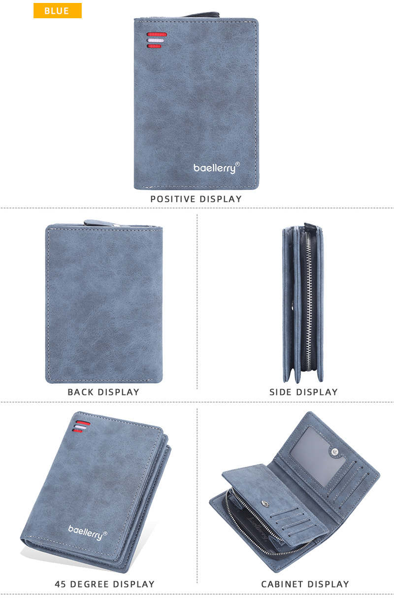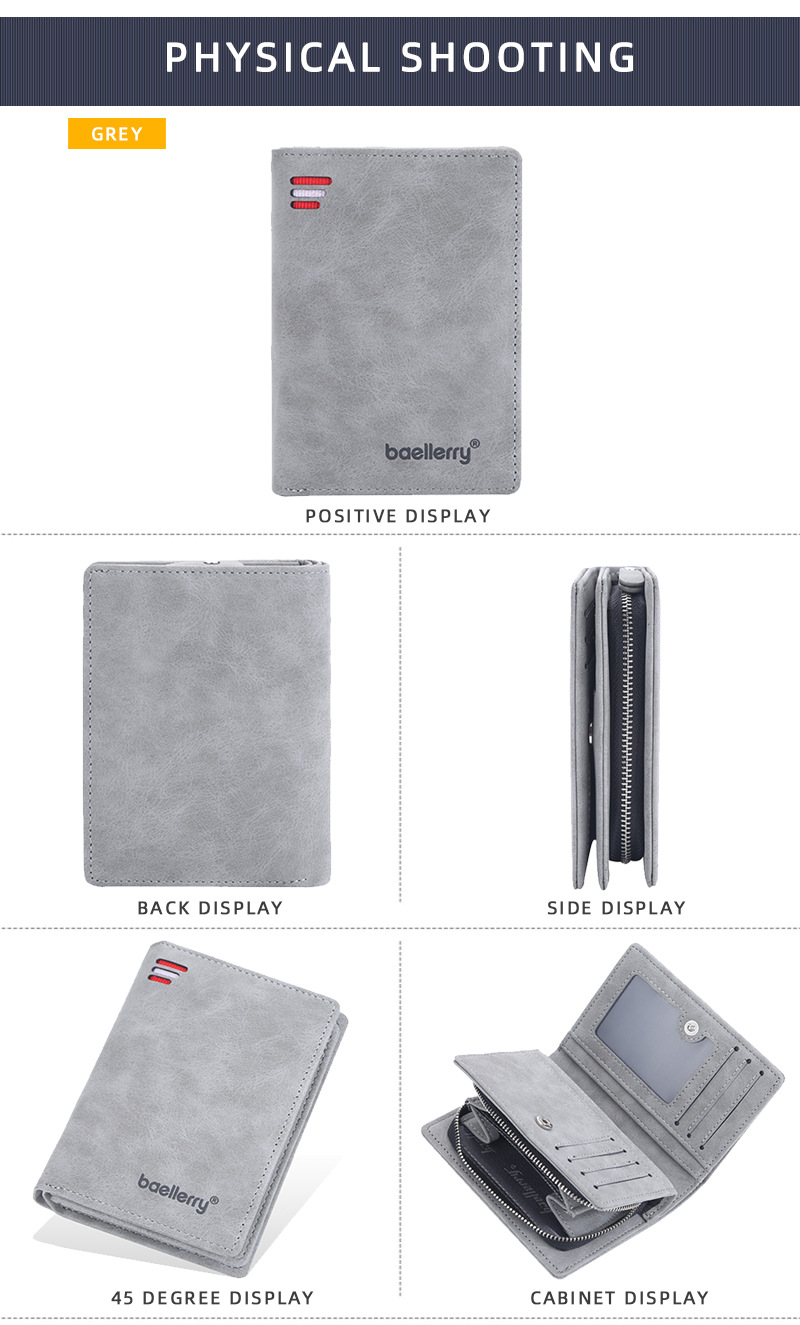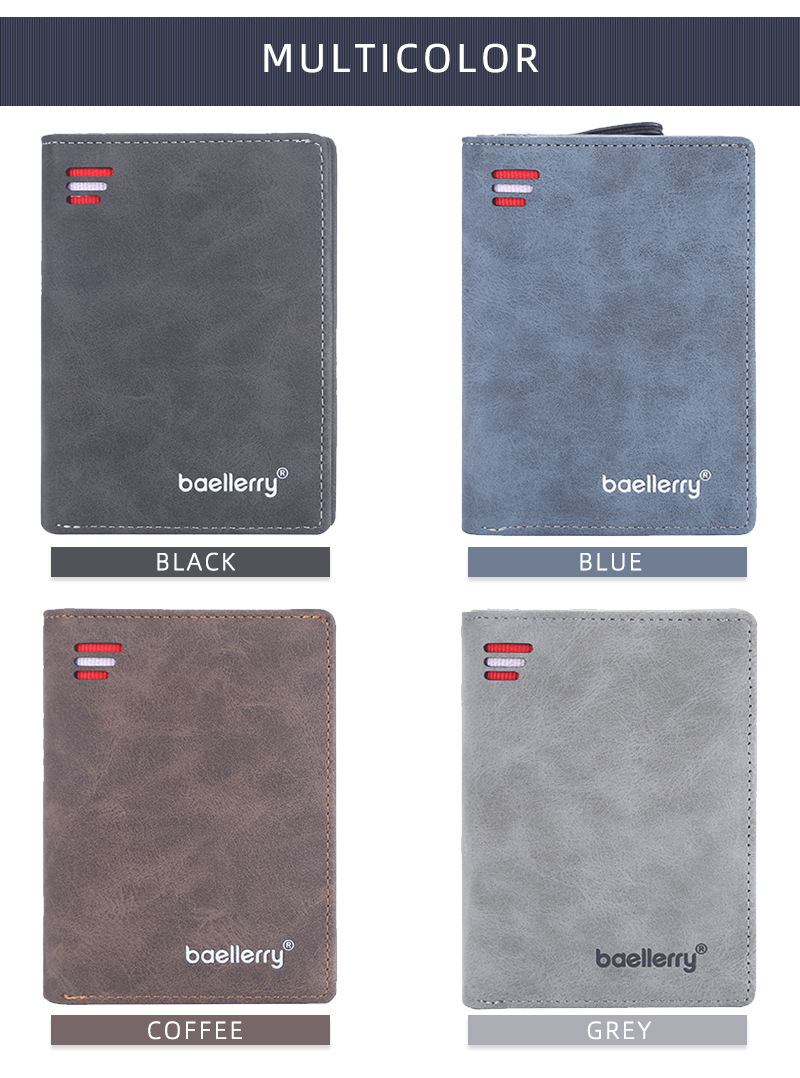Baellerry 새로운 남성용 지갑 스크럽 지퍼 멀티 카드 슬롯 수직 도난 방지 브러시 하이 엔드 소형 동전 지갑스토어 가기
