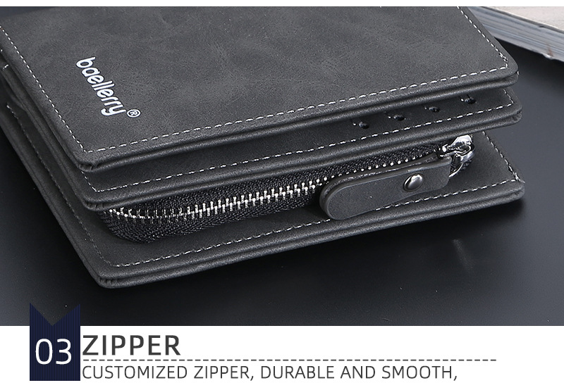 Baellerry 새로운 남성용 지갑 스크럽 지퍼 멀티 카드 슬롯 수직 도난 방지 브러시 하이 엔드 소형 동전 지갑