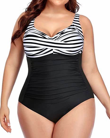 유럽 및 미국 여성 플러스 사이즈 원피스 수영복 슬림 핏 배꼽 치기 수영복 레이스 업 로우 컷 V 넥 수영복 전용 국경