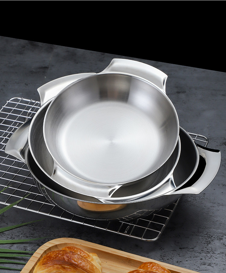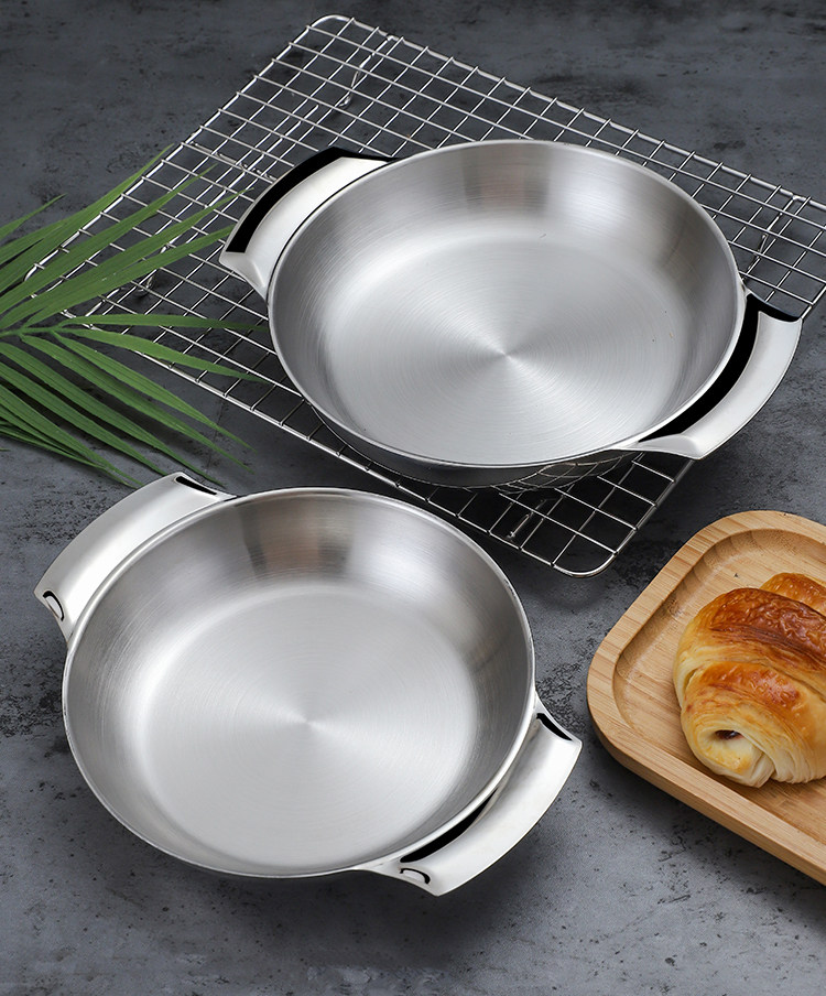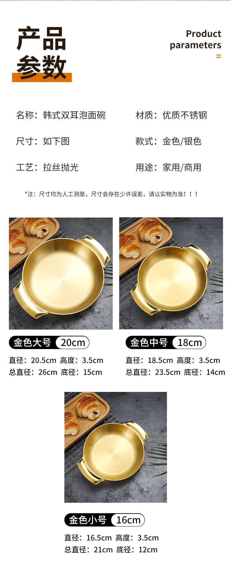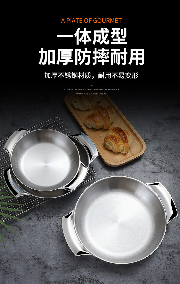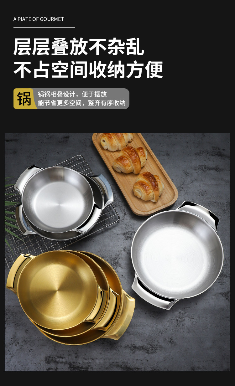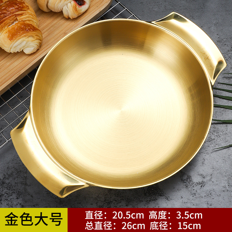 한국식 스테인레스 스틸 이중 귀 결합 스낵 플레이트 골든 디스크 창조적 인 구운 쌀 파스타 플레이트 레스토랑 해산물 플레이트 상업스토어 가기