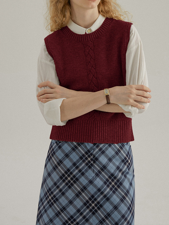 트레이드 스타일의 뒷면 두 개의 버튼 디자인과 라운드 넥 니트 조끼, 민소매 레이어드 디자인의 여성용 조끼