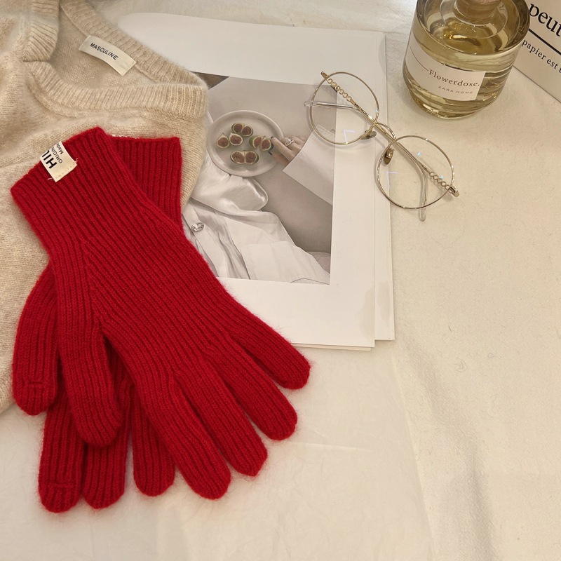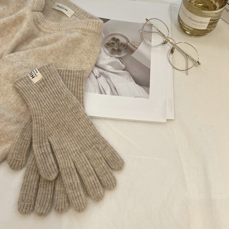 니트 울 장갑의 피타야 색상 간단한 가을과 겨울 한국 스타일 라벨링 손가락 터치 스크린 따뜻한 분할 손가락스토어 가기