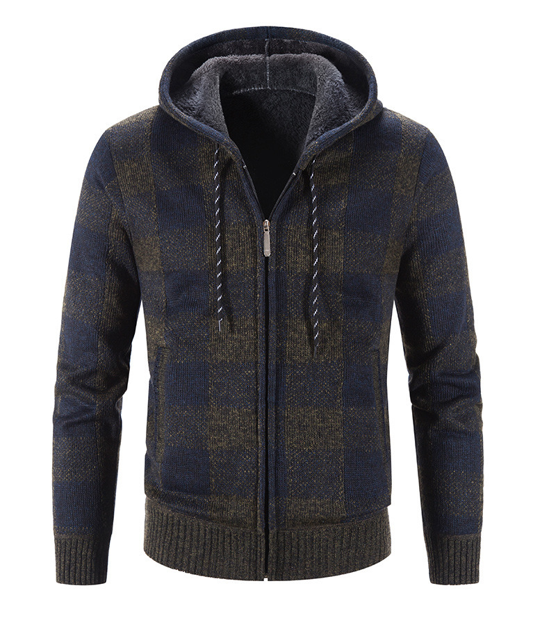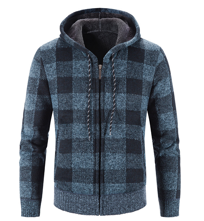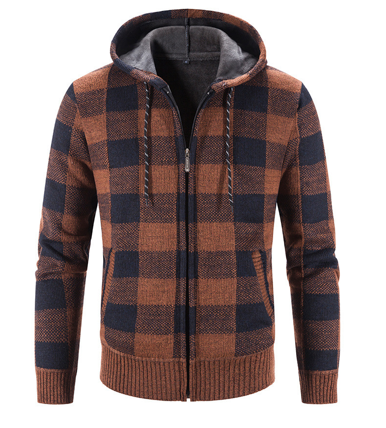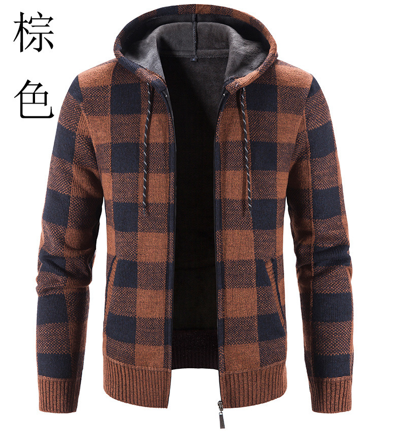 신상품 해외 직구 가을 겨울 남성용 카디건 두꺼운 지퍼 후드 니트 스웨터 체크무늬 남성용 자켓스토어 가기