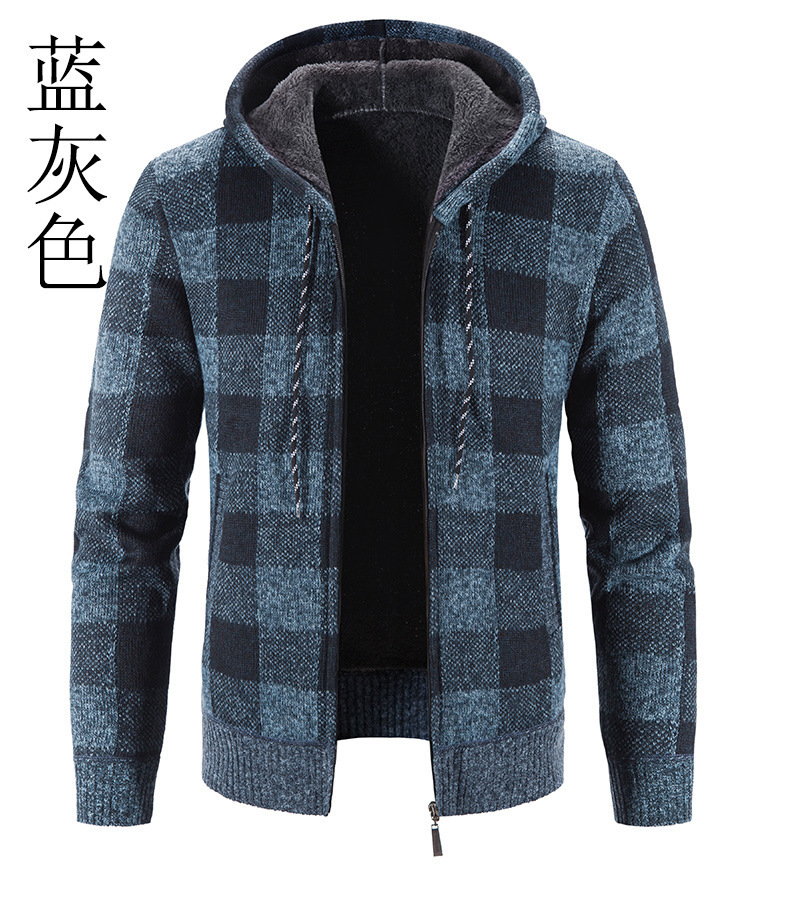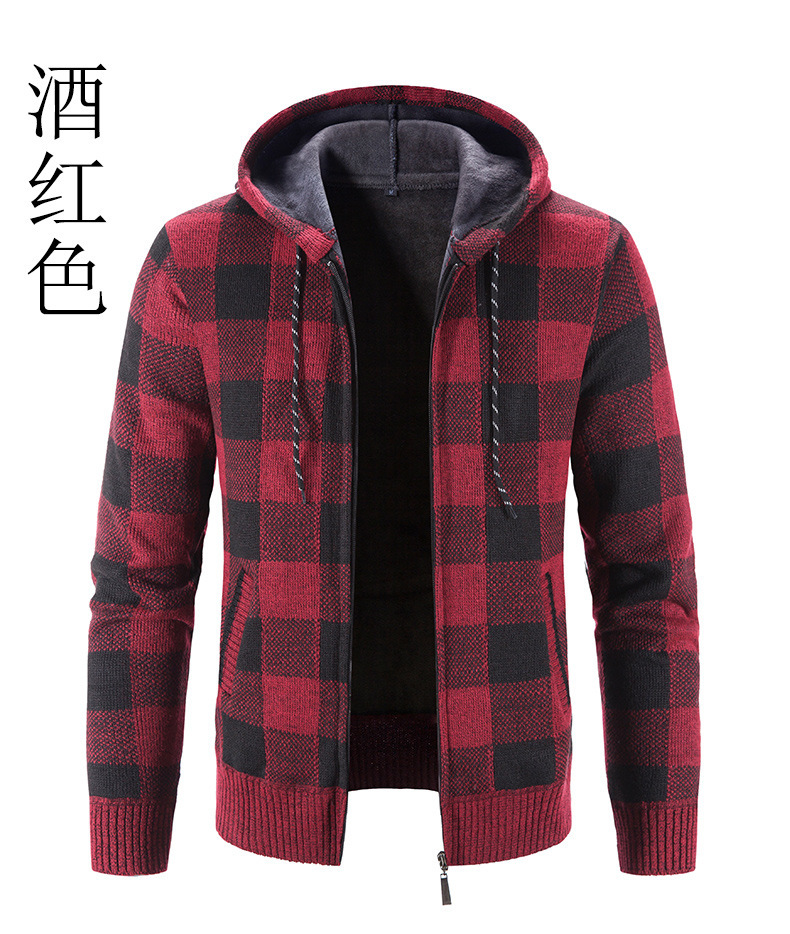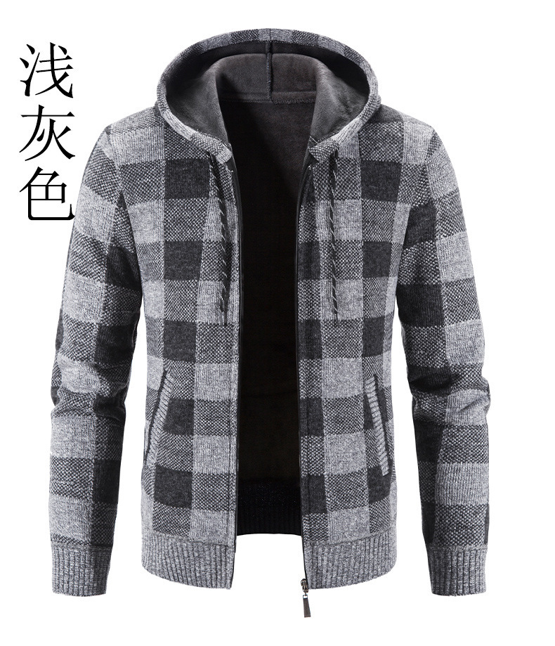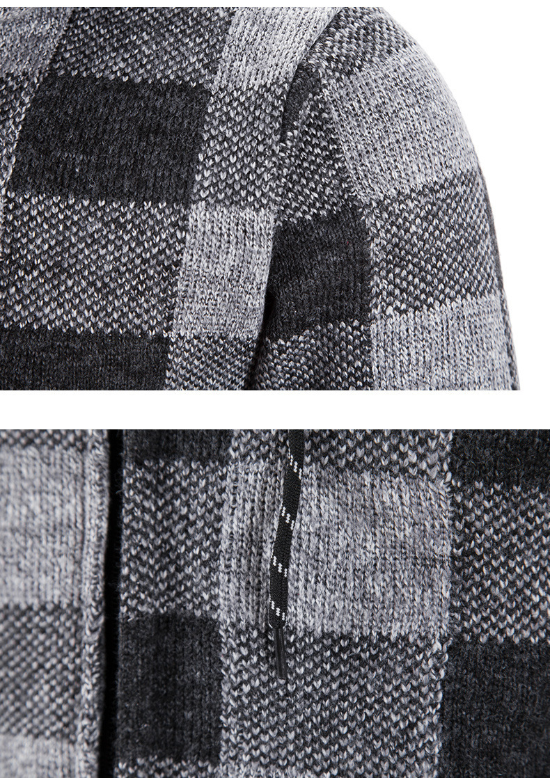 신상품 해외 직구 가을 겨울 남성용 카디건 두꺼운 지퍼 후드 니트 스웨터 체크무늬 남성용 자켓