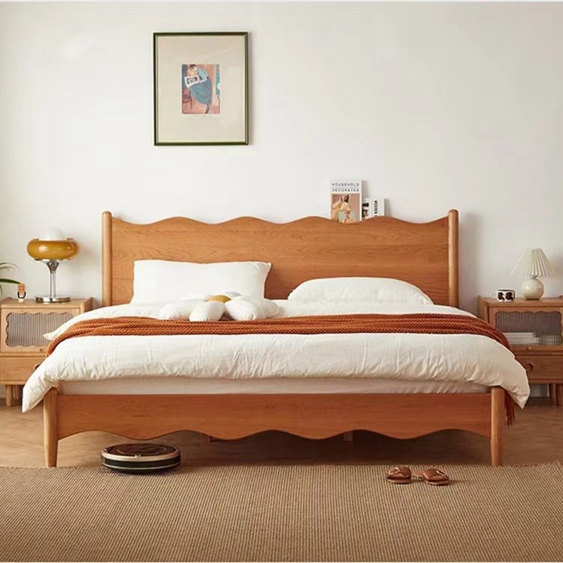 [웨이브 침대] 레트로 단단한 나무 침대 체리 나무 일본식 작은 아파트 가구 간단한 통나무 더블 침대 마스터 침대