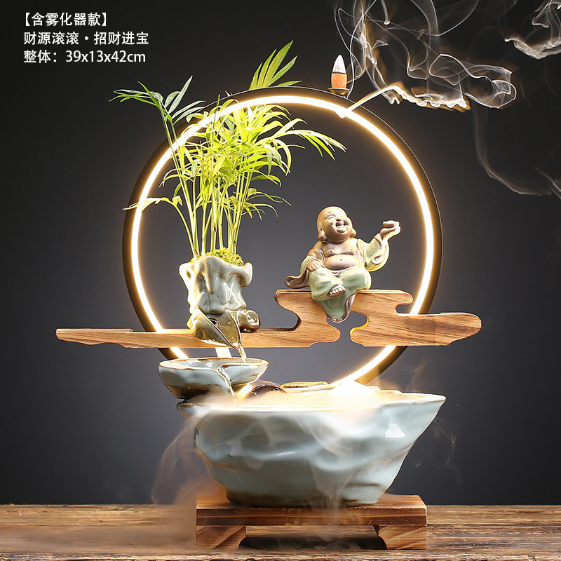 새로운 중국식 점쟁이 흐르는 물 장식품 분수 바위 거실 사무실 탁상 물 풍경 창조적 집들이 오프닝 선물