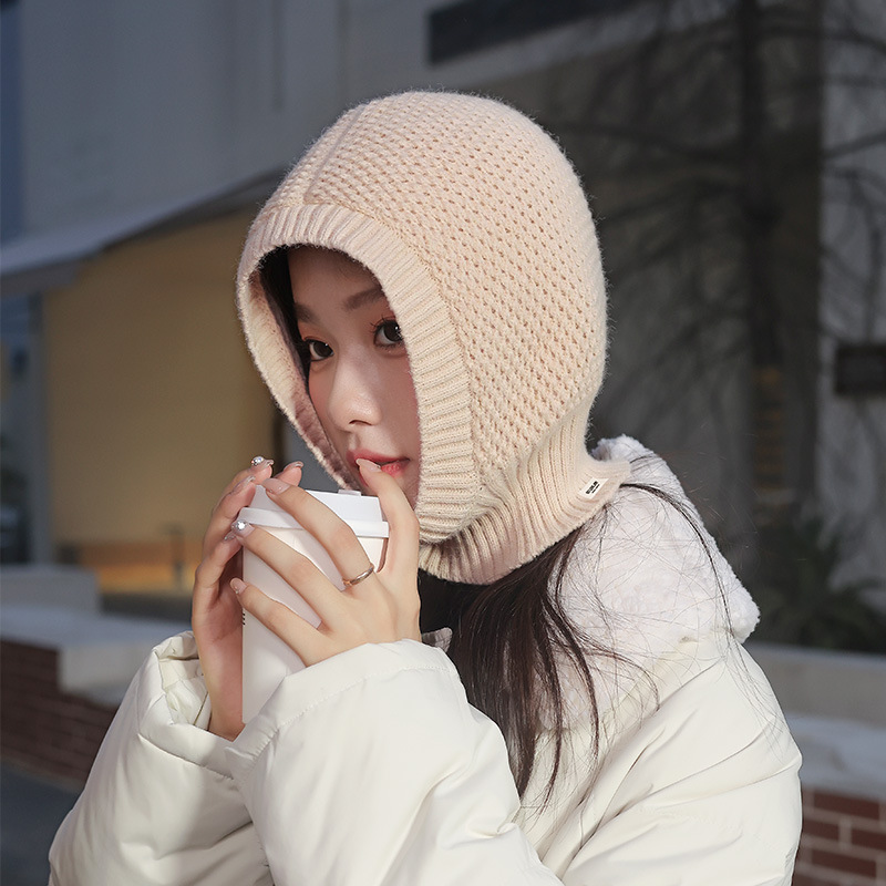 겨울 울 니트 원피스 모자 방풍 목 커버 여성용 따뜻한 헤드 기어 메쉬 빨간 얼굴 작은 조수 Baotou 모자 스택 모자스토어 가기