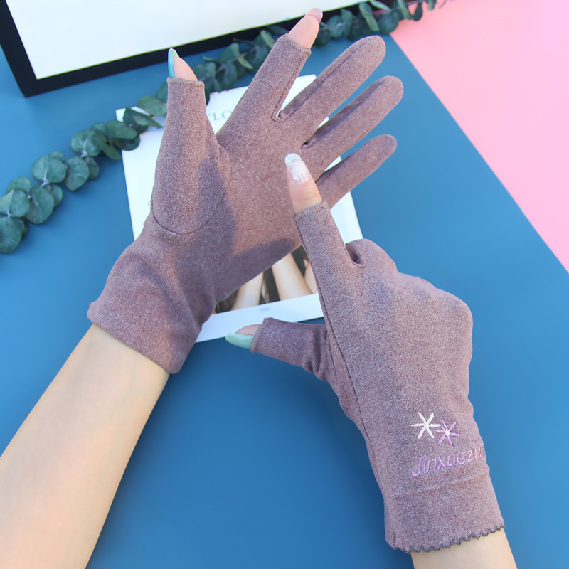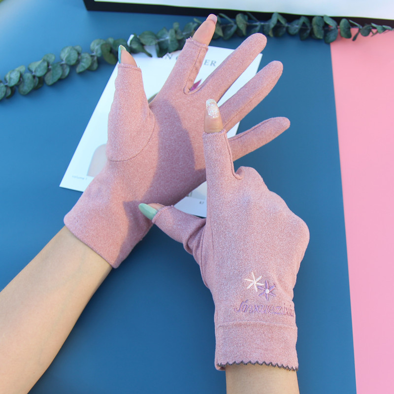 가을 장갑 여자의 겨울 운전 사이클링 쓰기 따뜻한 짧은 한국어 스타일 귀여운 터치 스크린 얇은 이슬 두 손가락과 반 손가락