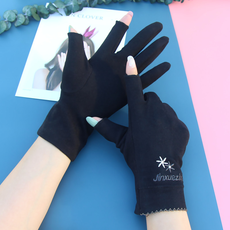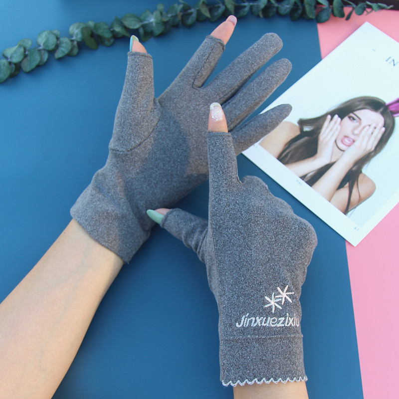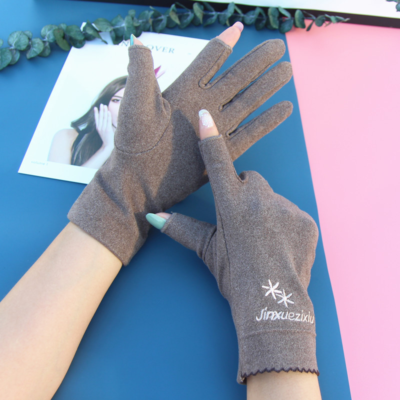 가을 장갑 여자의 겨울 운전 사이클링 쓰기 따뜻한 짧은 한국어 스타일 귀여운 터치 스크린 얇은 이슬 두 손가락과 반 손가락스토어 가기