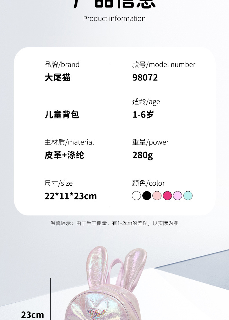 새로운 스팽글 어린이 트렌디 한 배낭 토끼 만화 활 공주 소녀의 패션 귀여운 어린이 가방