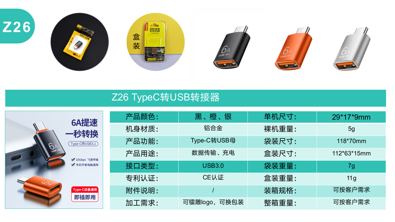• 【Z27】표시등 Type-c 어댑터 - 주황색