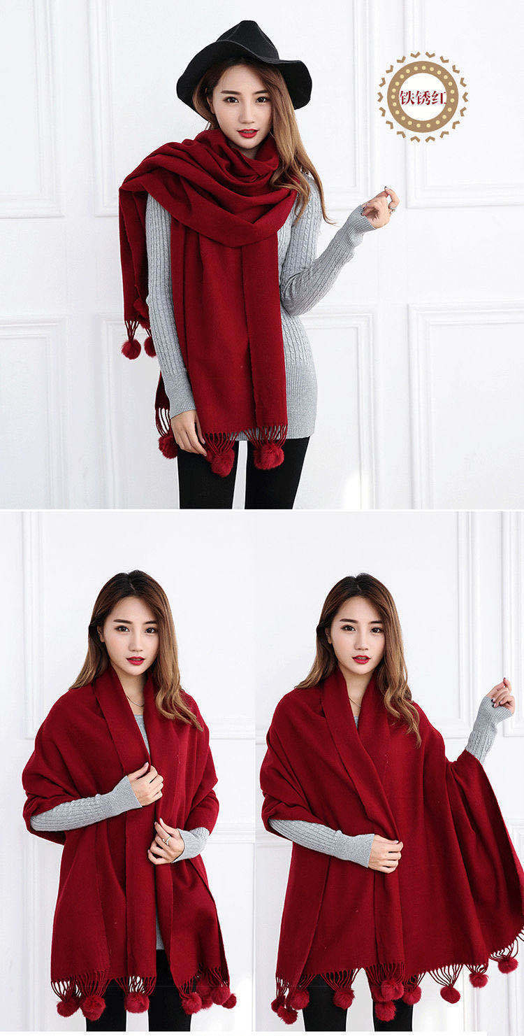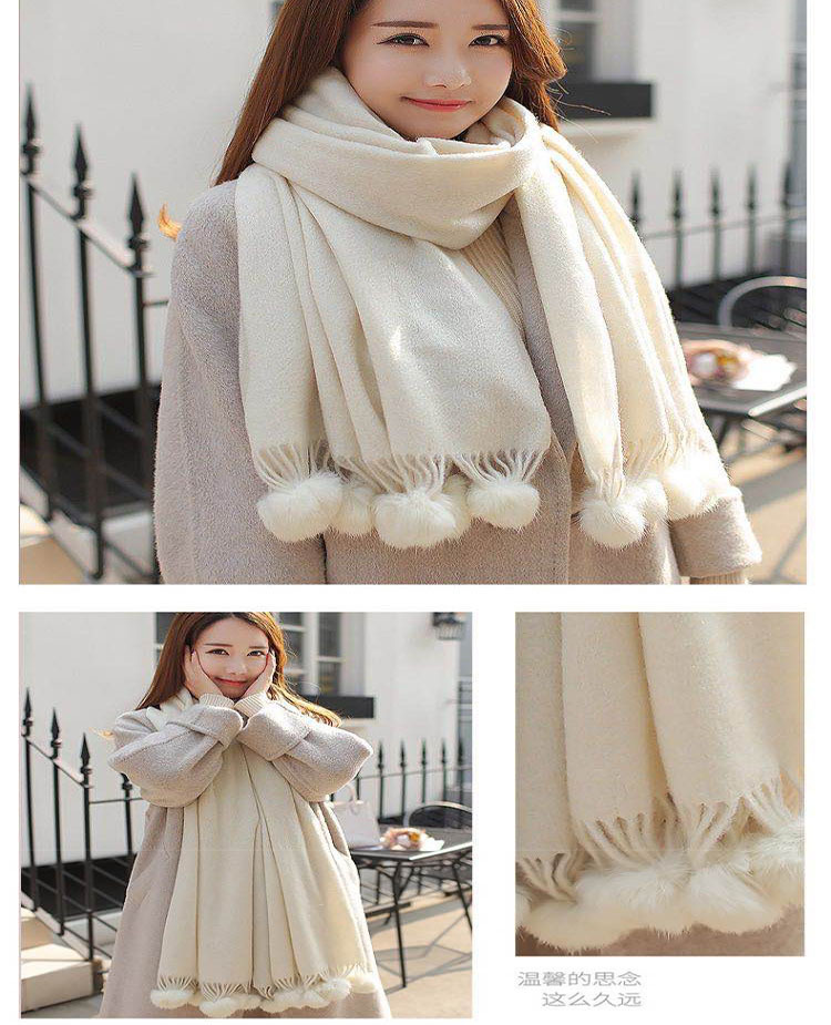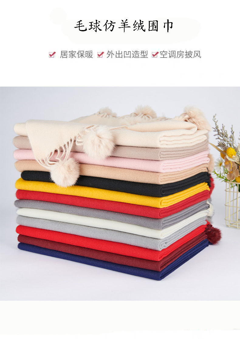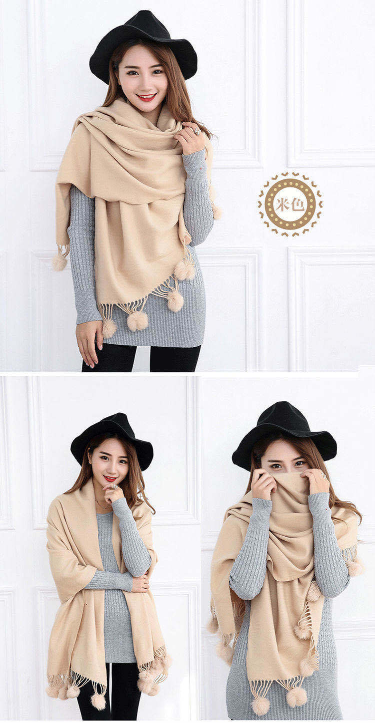 스카프 여자의 겨울 모든 일치 단색 스카프 한국 캐시미어 술 숄 간단한 두꺼운 모피 공 남자의 스카프스토어 가기
