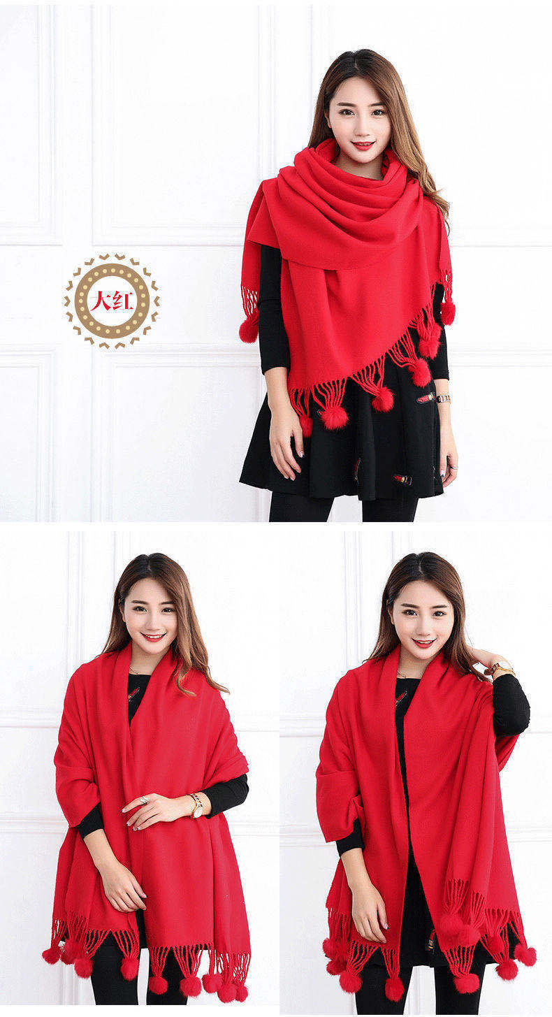 스카프 여자의 겨울 모든 일치 단색 스카프 한국 캐시미어 술 숄 간단한 두꺼운 모피 공 남자의 스카프