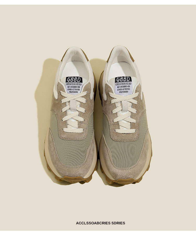 공장 도매 정품 가죽 아빠 신발 컬러 매칭 레이스 업 라운드 발가락 두꺼운 밑창 포레스트 검프 캐주얼 스포츠 신발 여성 2025 봄, 가을스토어 가기