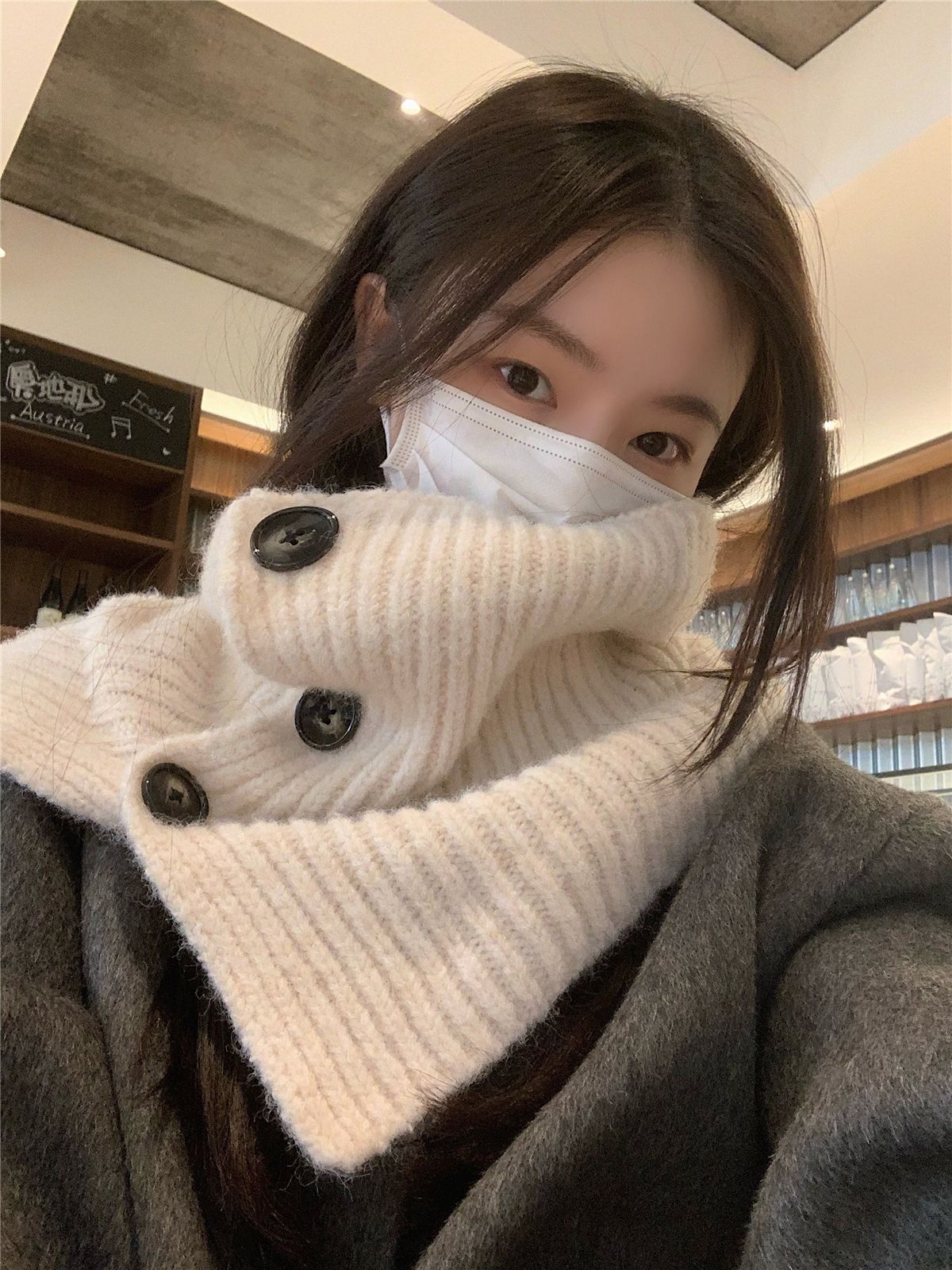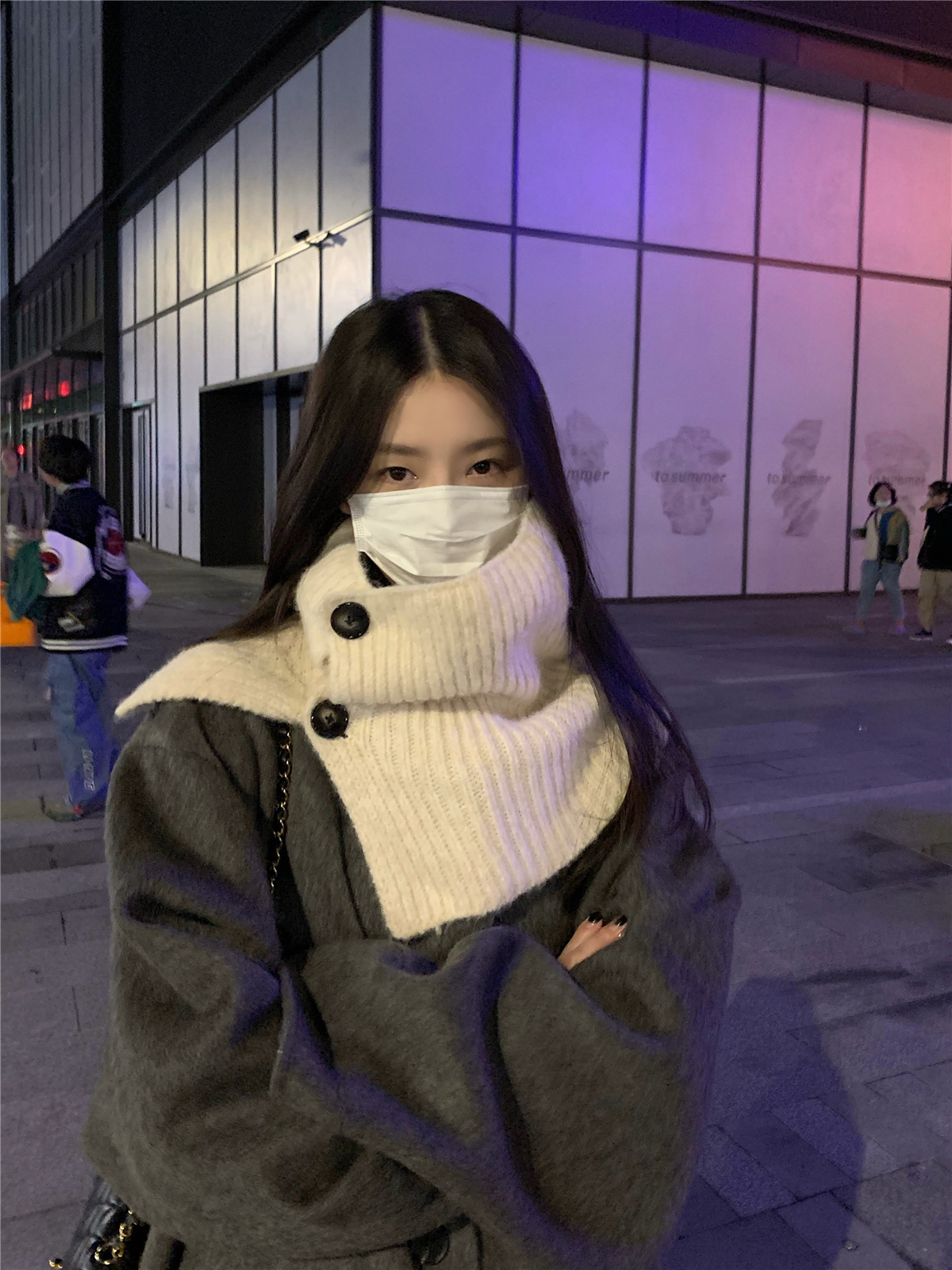 스카프 캡 넥 세트 여성용 만능 가을 겨울 스카프 한국식 단색 방한 따뜻한 목 보호 니트 숄 트렌디 외부스토어 가기