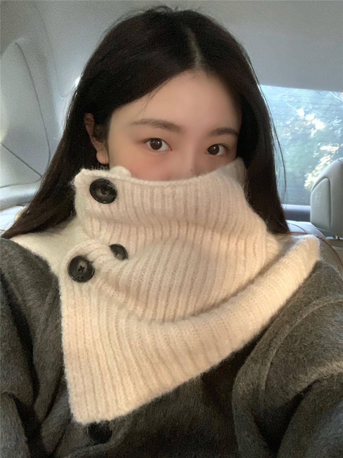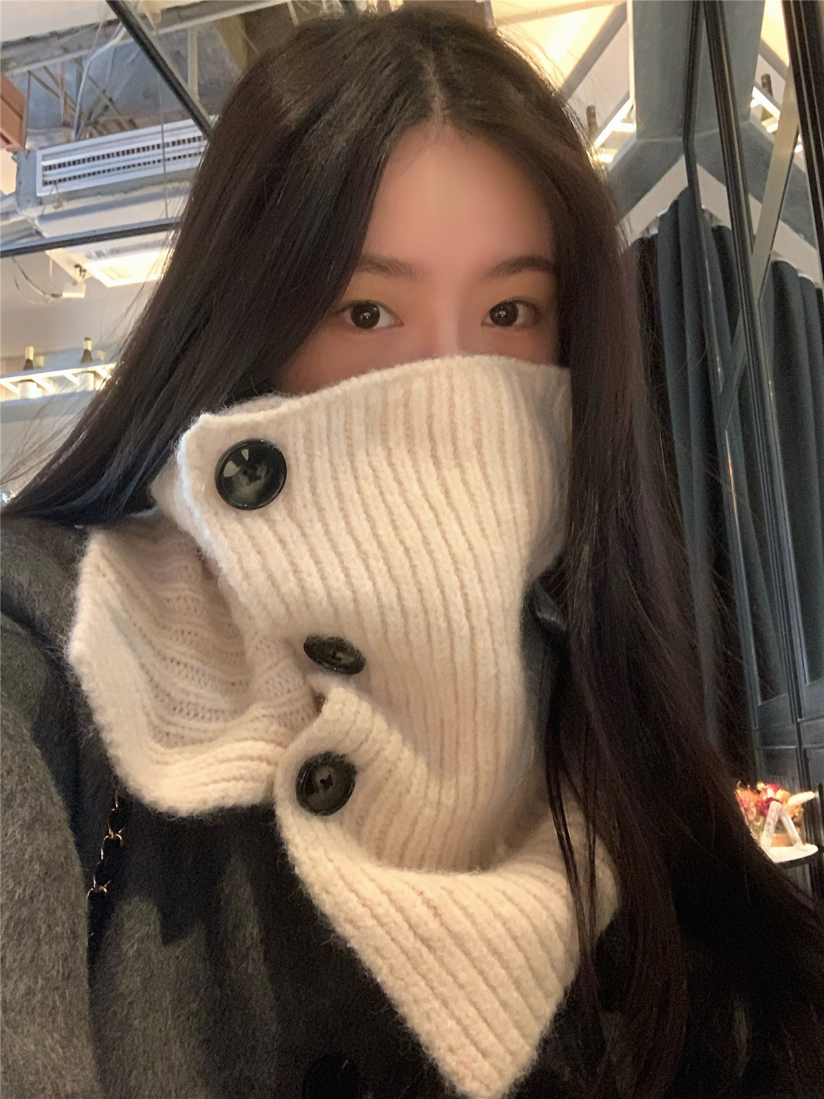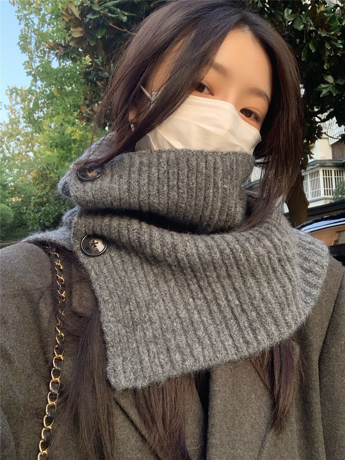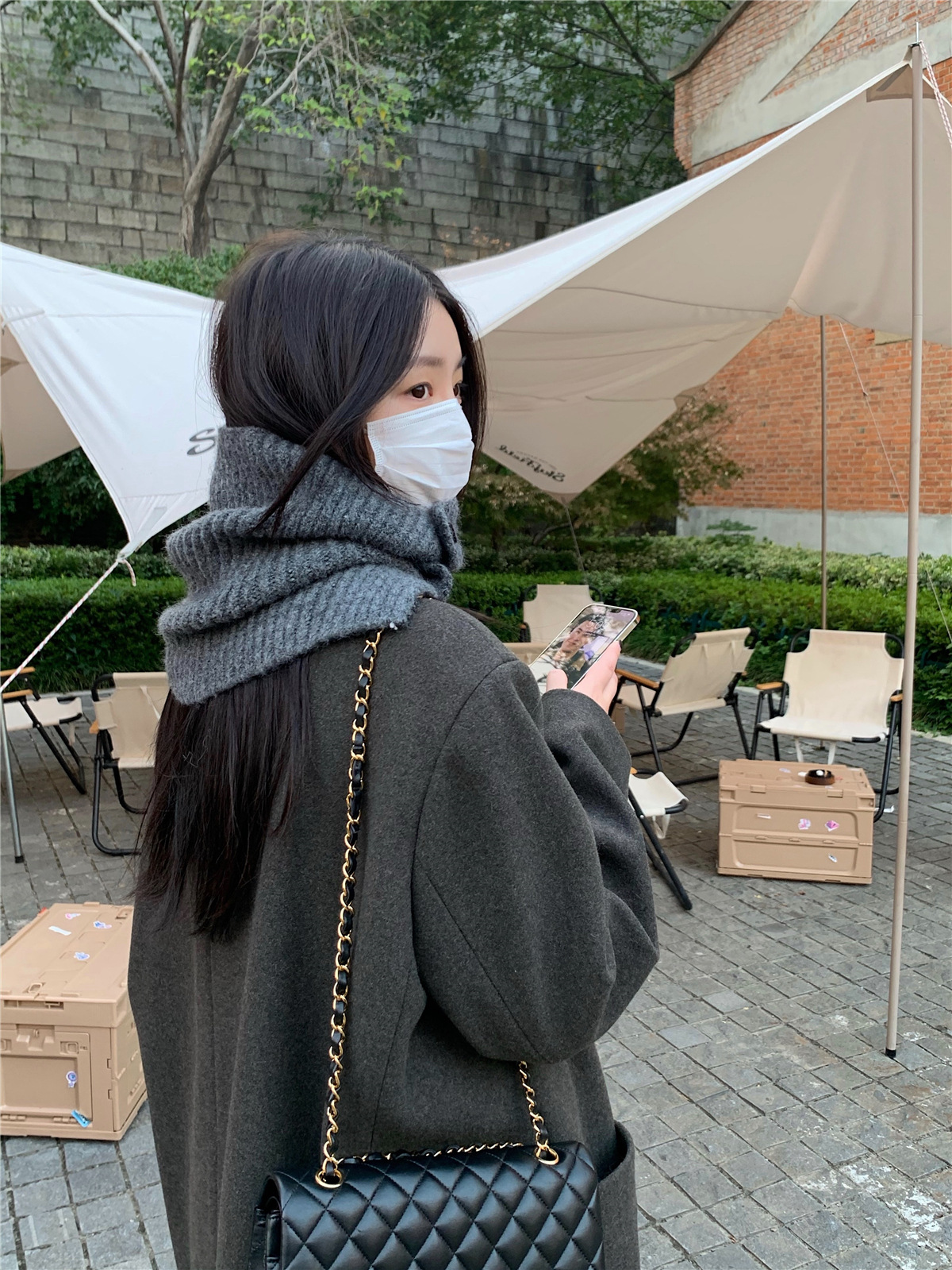 스카프 캡 넥 세트 여성용 만능 가을 겨울 스카프 한국식 단색 방한 따뜻한 목 보호 니트 숄 트렌디 외부