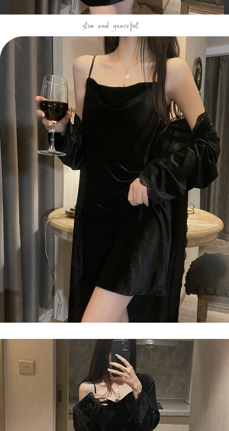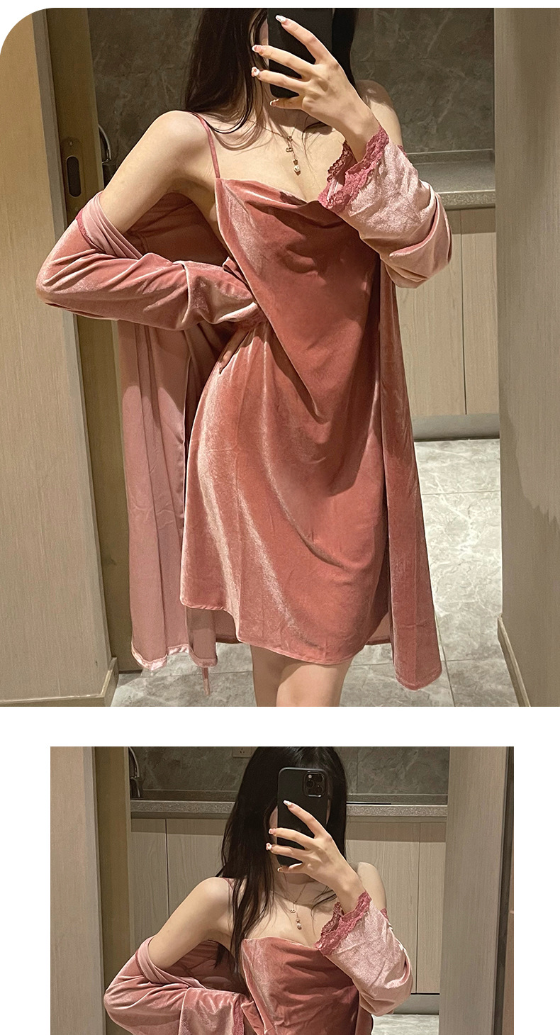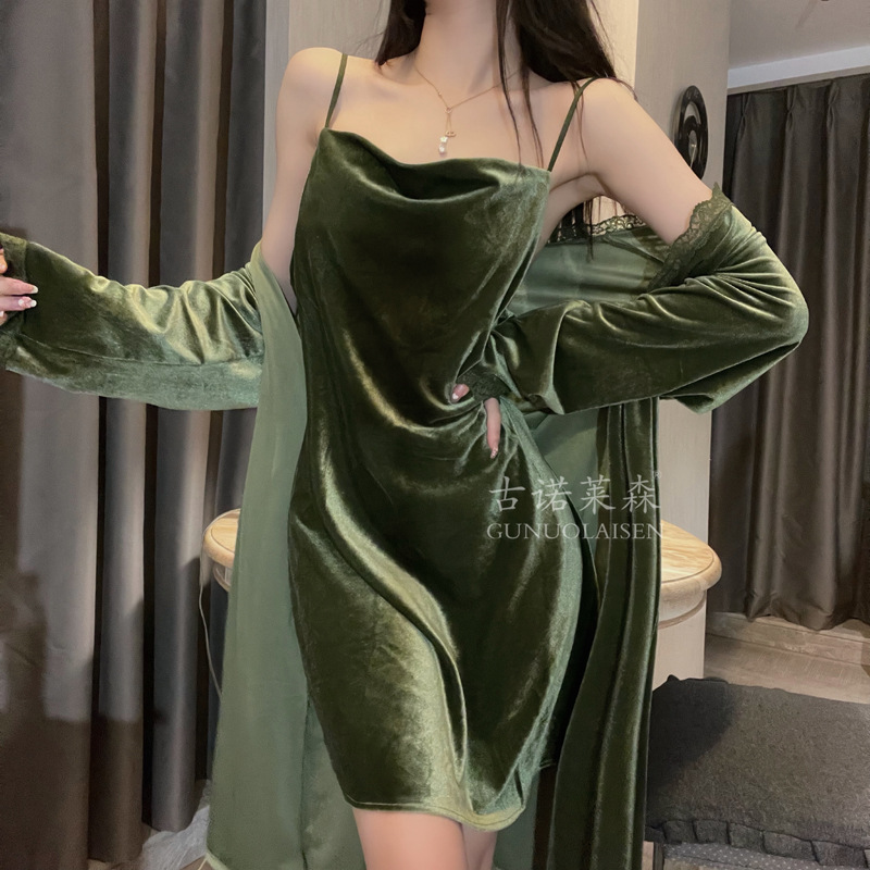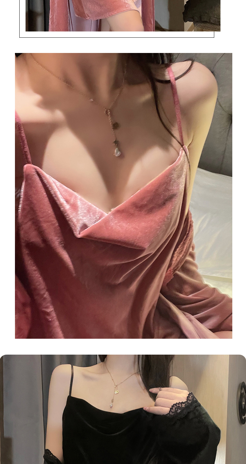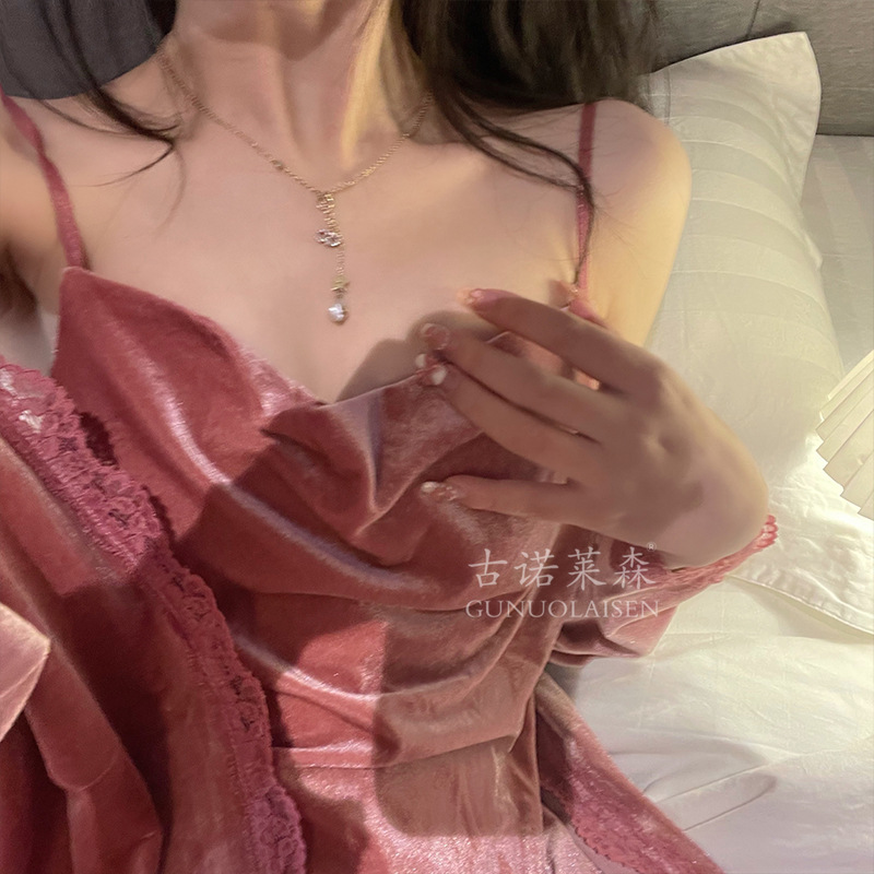 여성용 골드 벨벳 잠옷 2025년 신상 가을 겨울 순수한 매력 세트 잠옷 섹시한 레이스 겨울 스타일스토어 가기