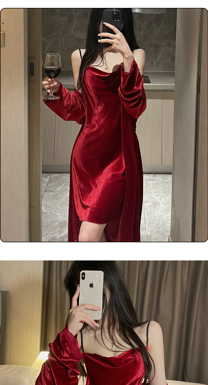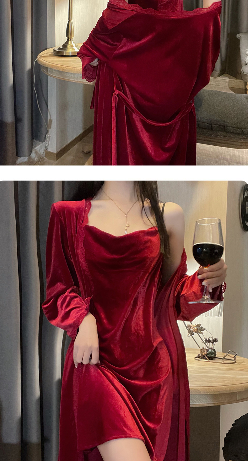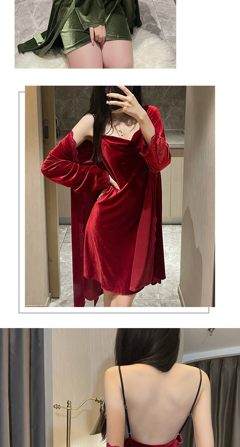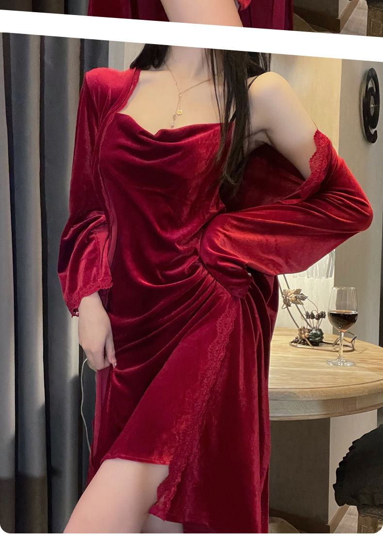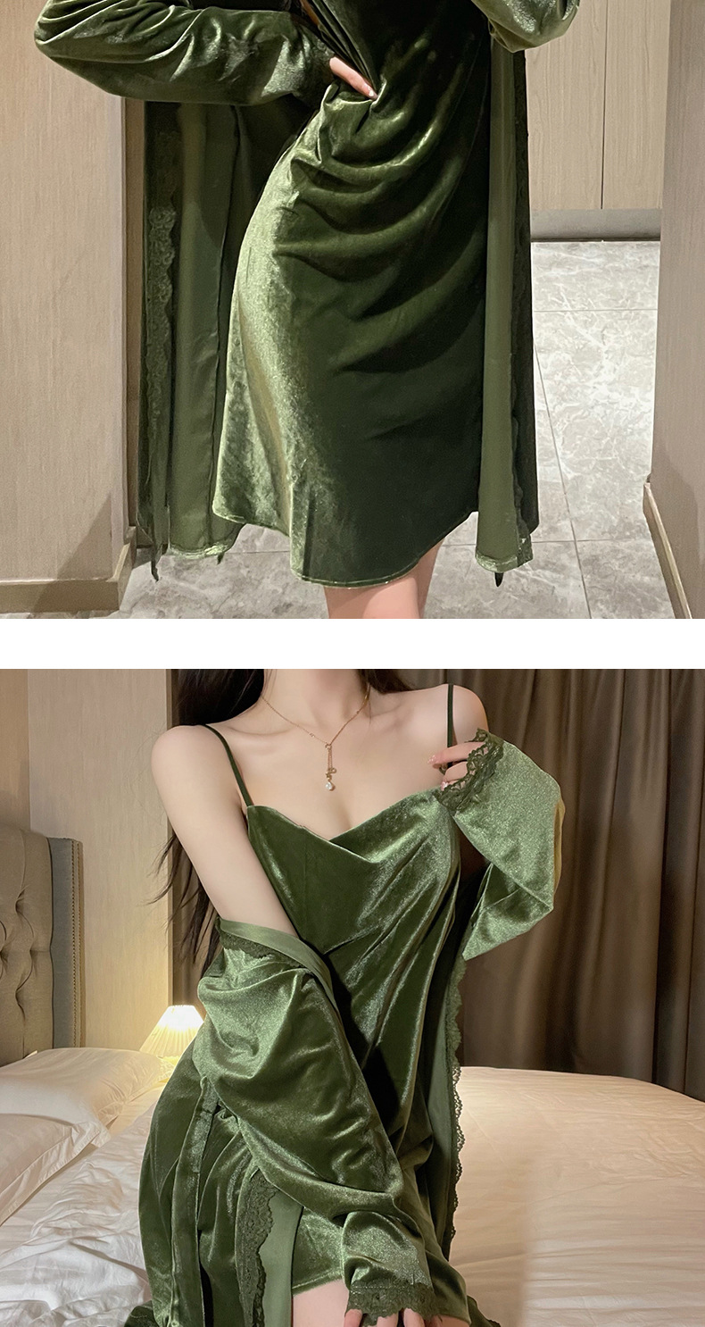 여성용 골드 벨벳 잠옷 2025년 신상 가을 겨울 순수한 매력 세트 잠옷 섹시한 레이스 겨울 스타일스토어 가기