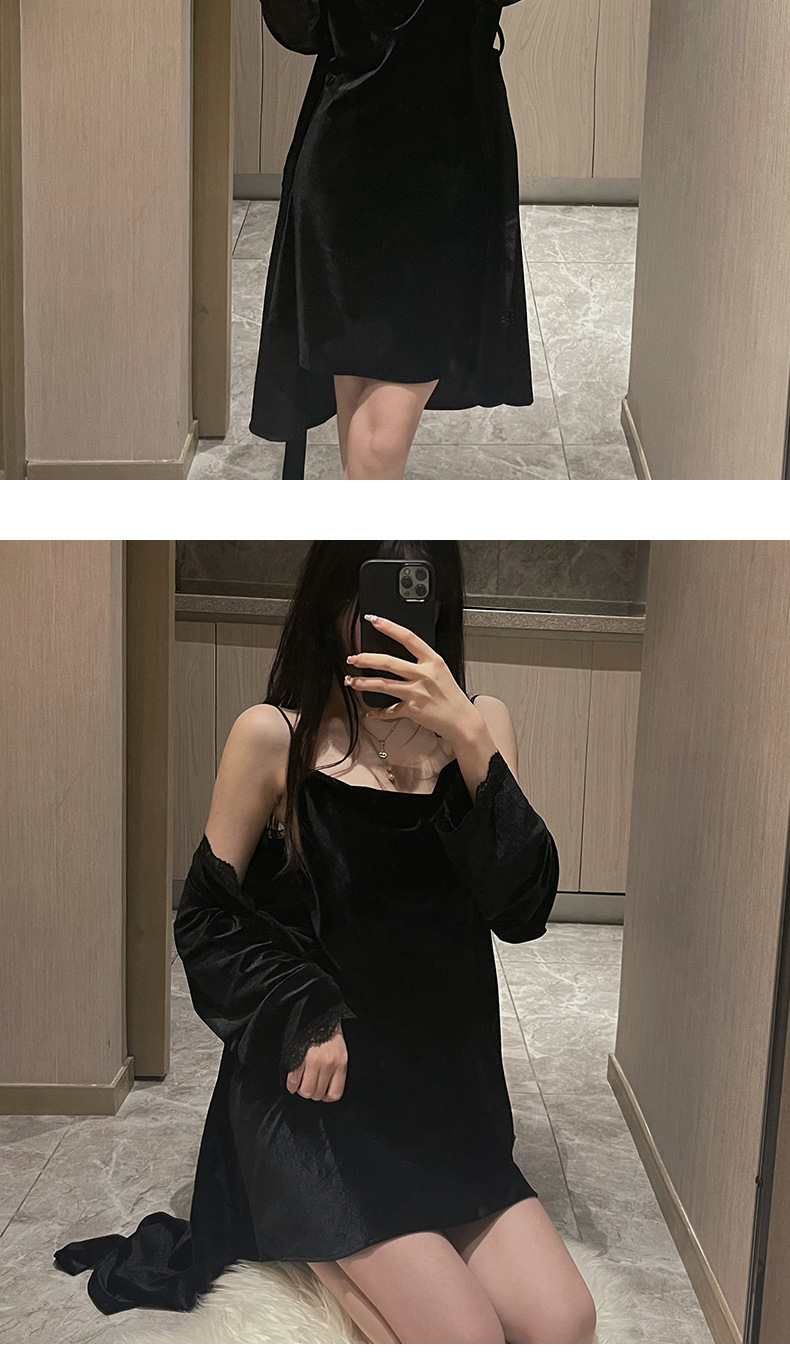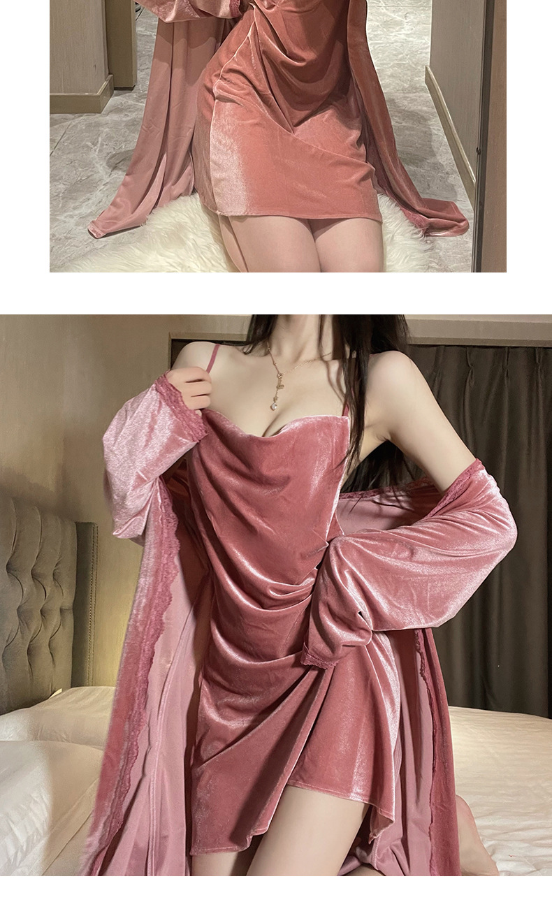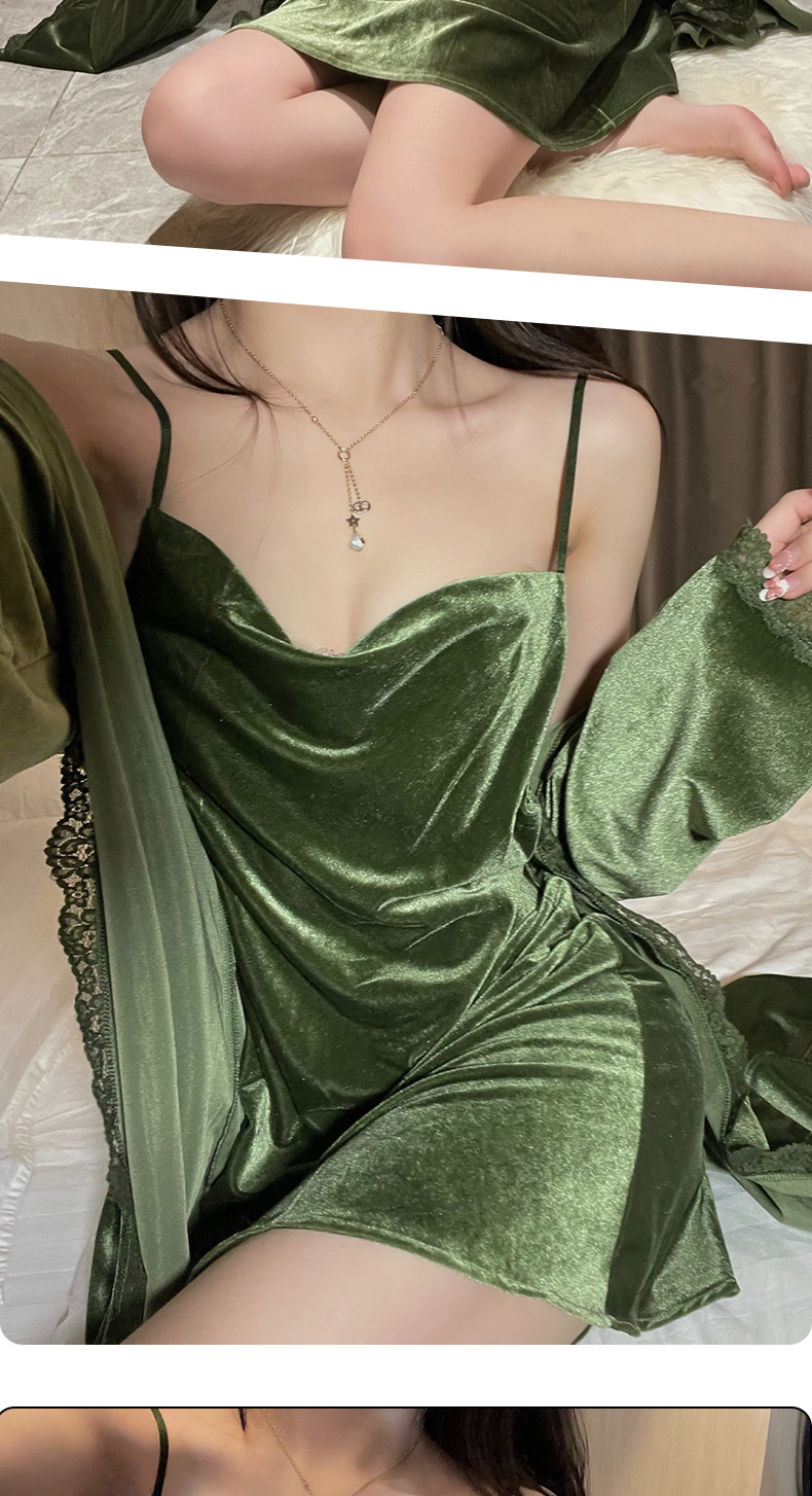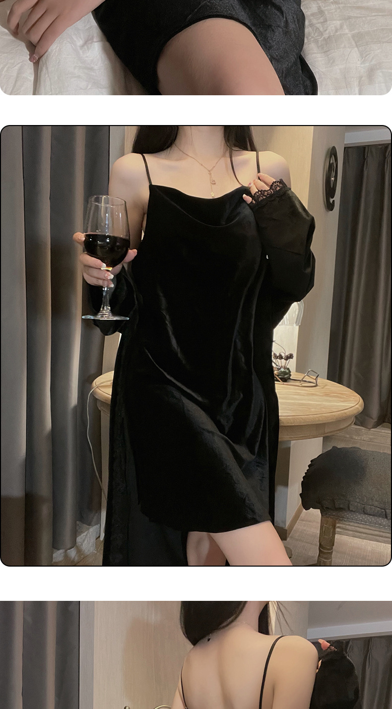 여성용 골드 벨벳 잠옷 2025년 신상 가을 겨울 순수한 매력 세트 잠옷 섹시한 레이스 겨울 스타일스토어 가기