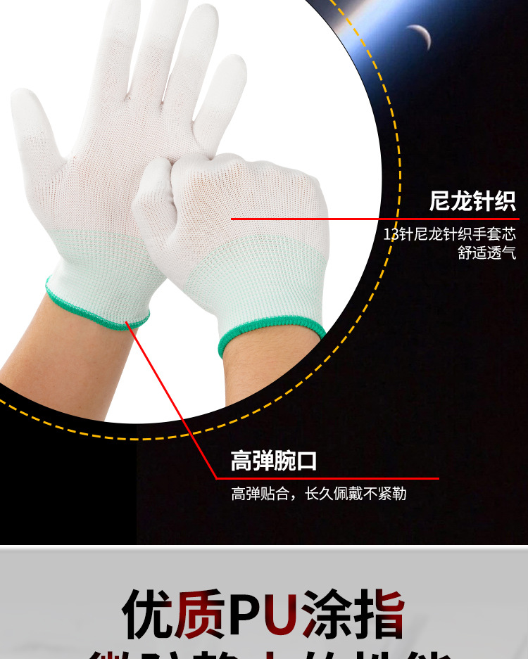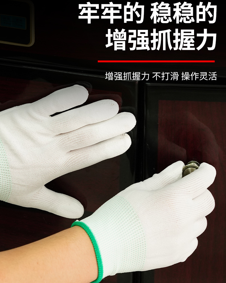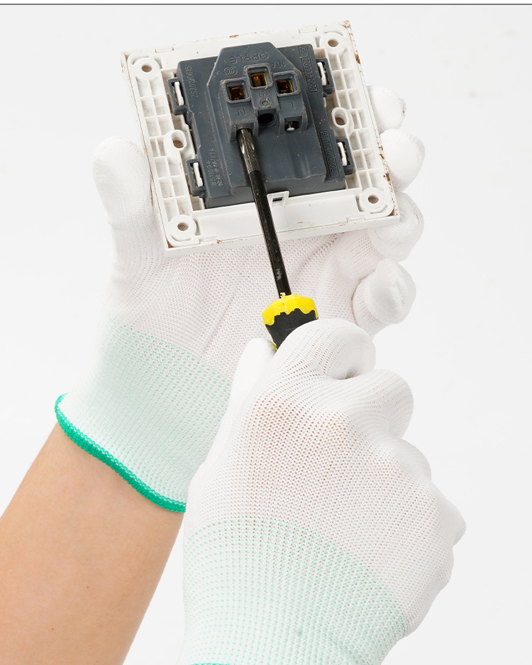 PU 코팅 장갑, 얇고 내마모성, 미끄럼 방지, 통기성 작업용 남녀 보호 장갑, 도매, 정전기 방지스토어 가기