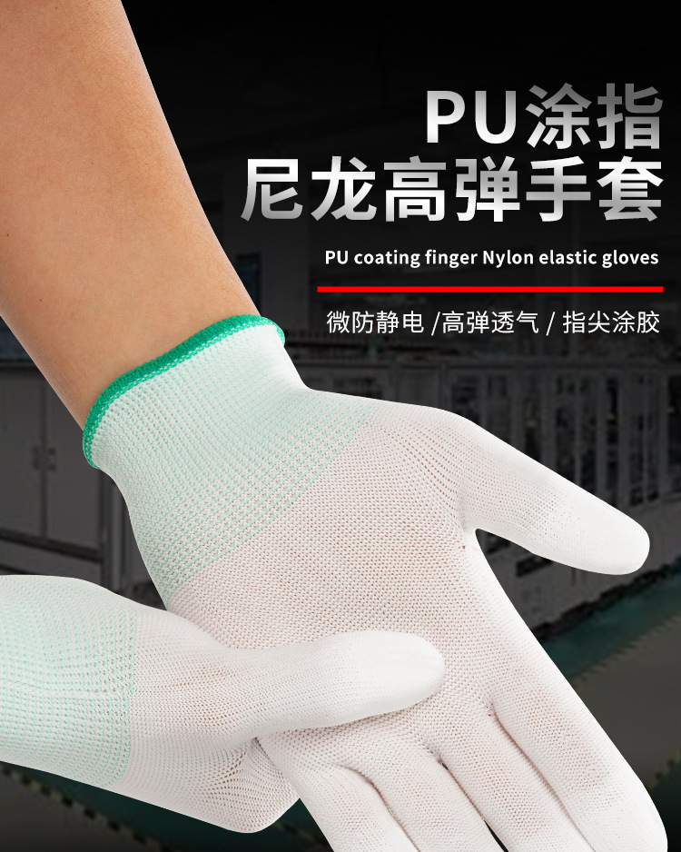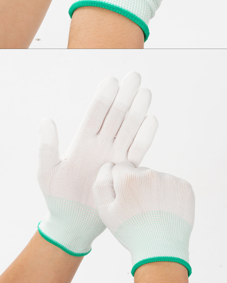 • 흰색 녹색 PU 손가락 코팅 장갑