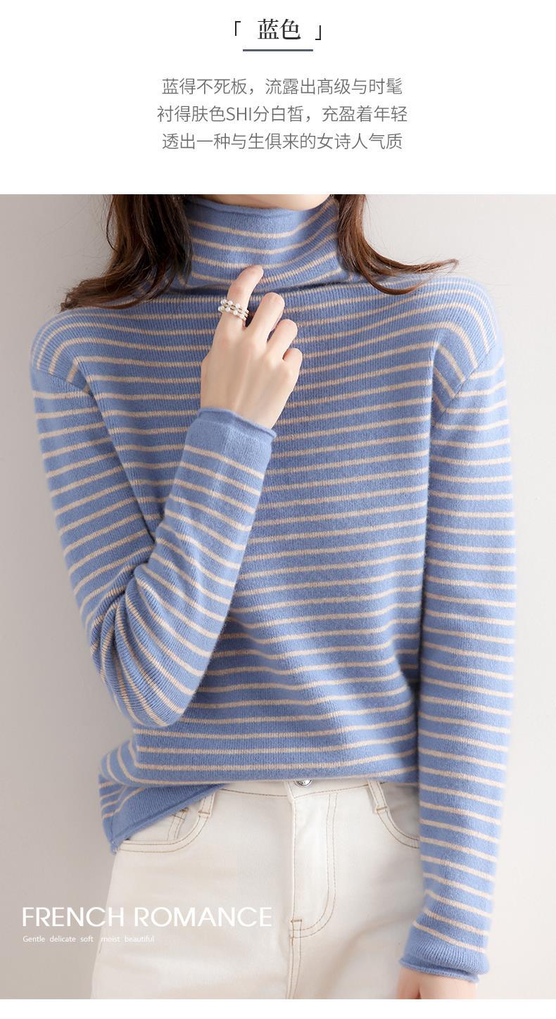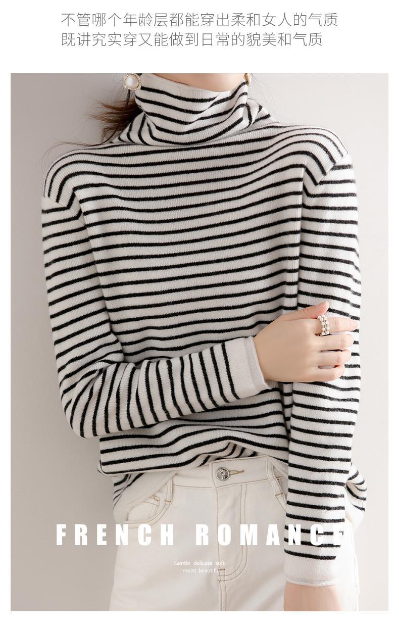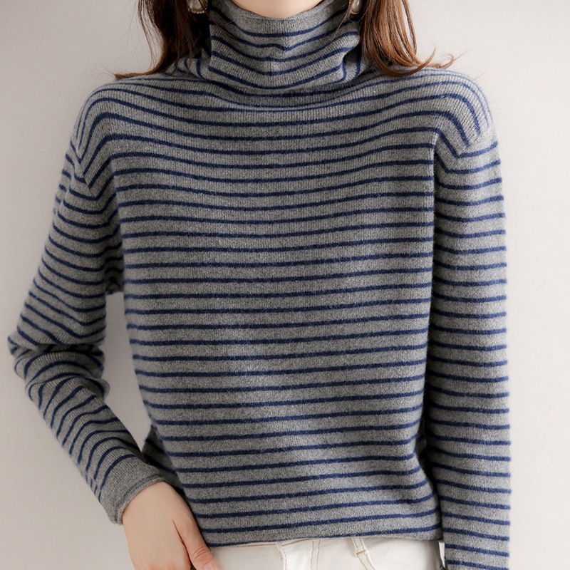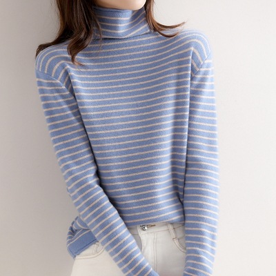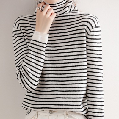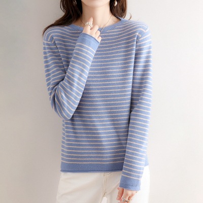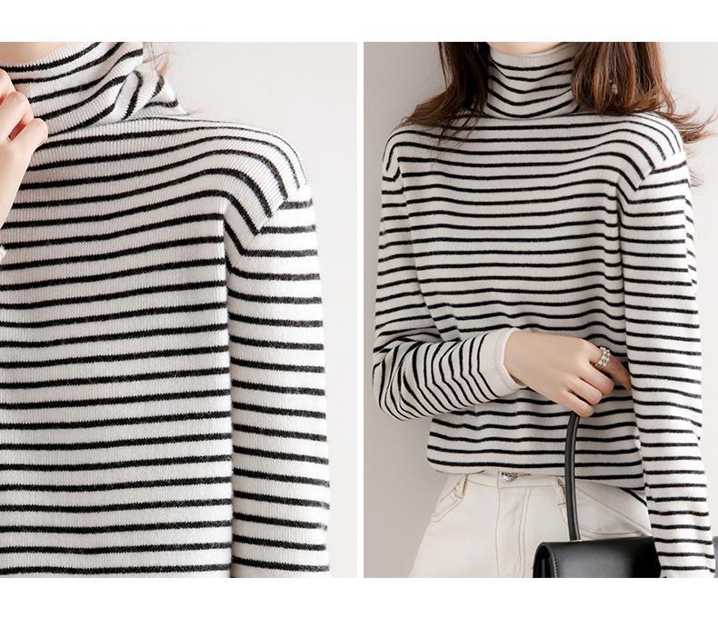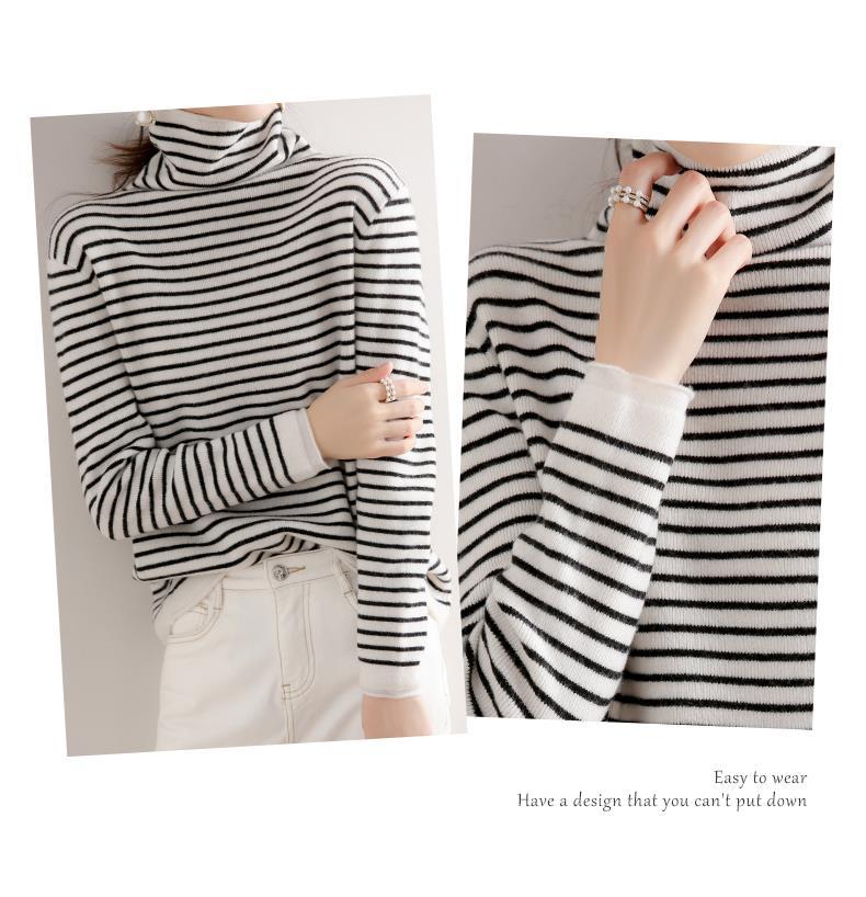 도매 파일 칼라 스트라이프 여성의 가을과 겨울 새로운 인테리어 대비 스웨터 느슨한 슬림 니트 베이스 셔츠스토어 가기