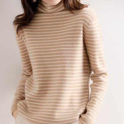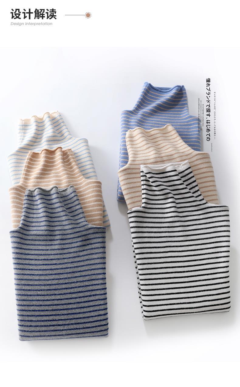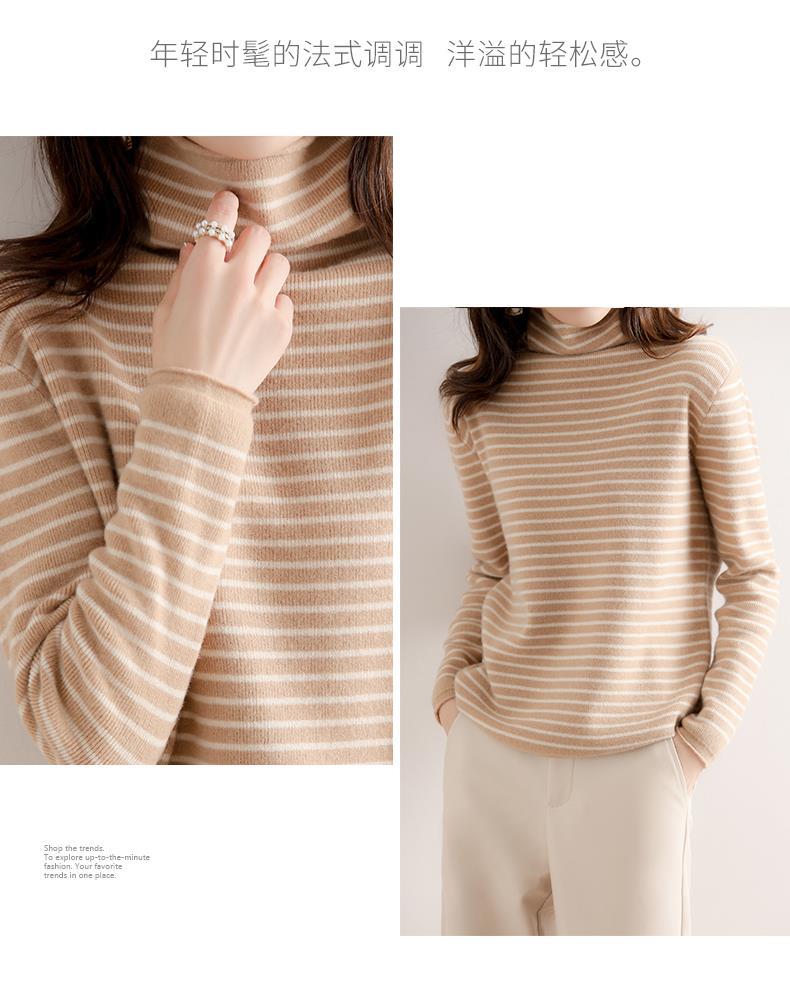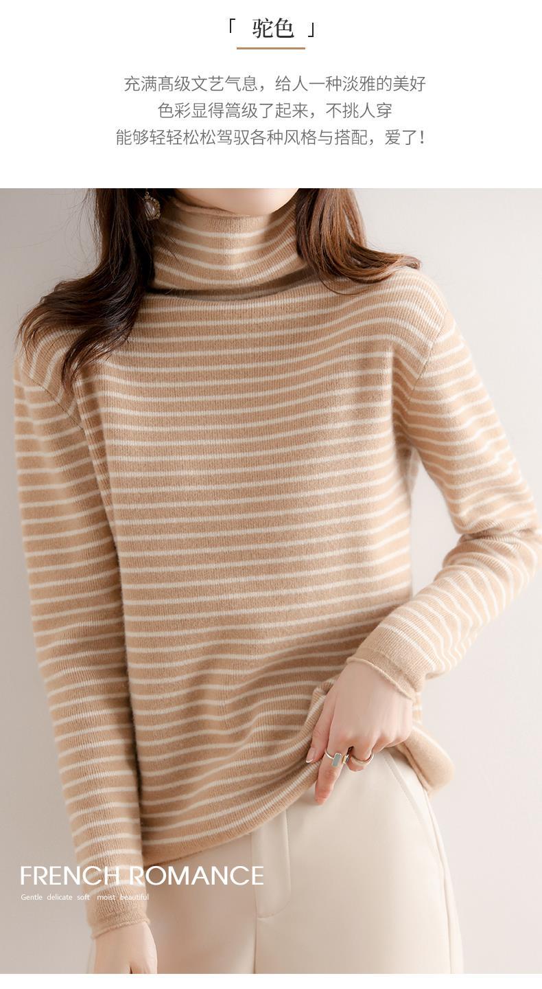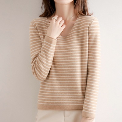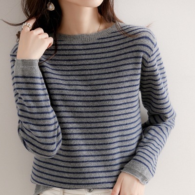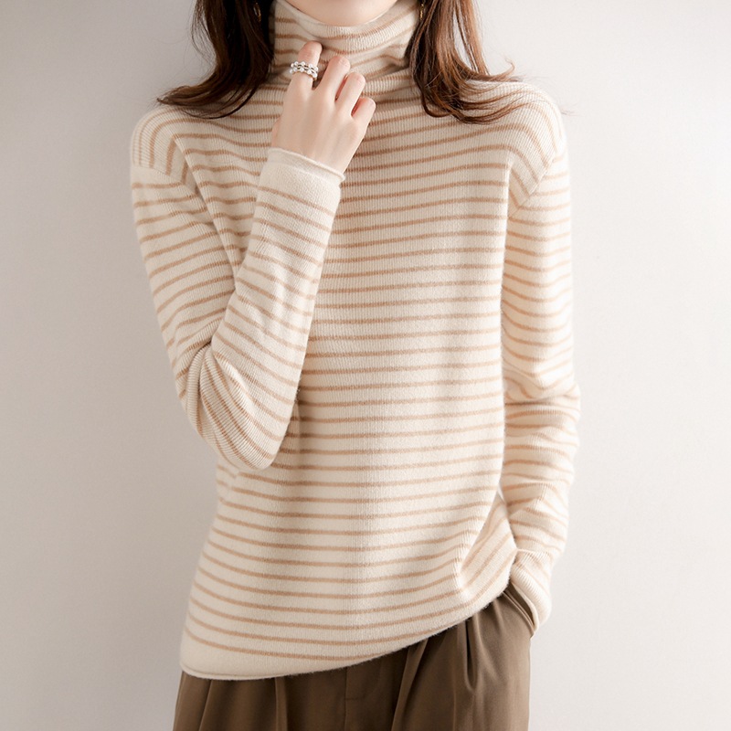 도매 파일 칼라 스트라이프 여성의 가을과 겨울 새로운 인테리어 대비 스웨터 느슨한 슬림 니트 베이스 셔츠스토어 가기