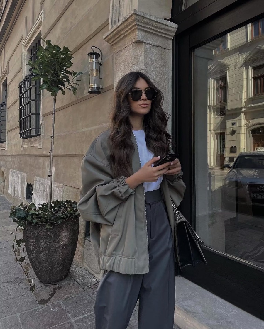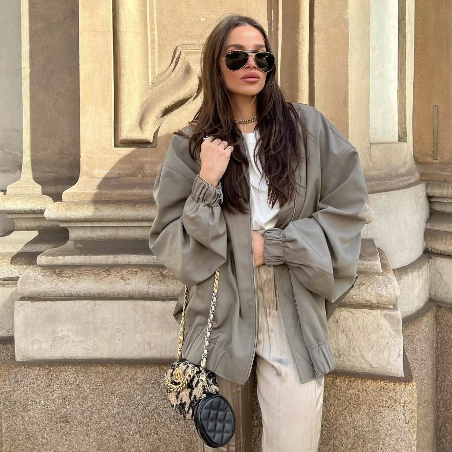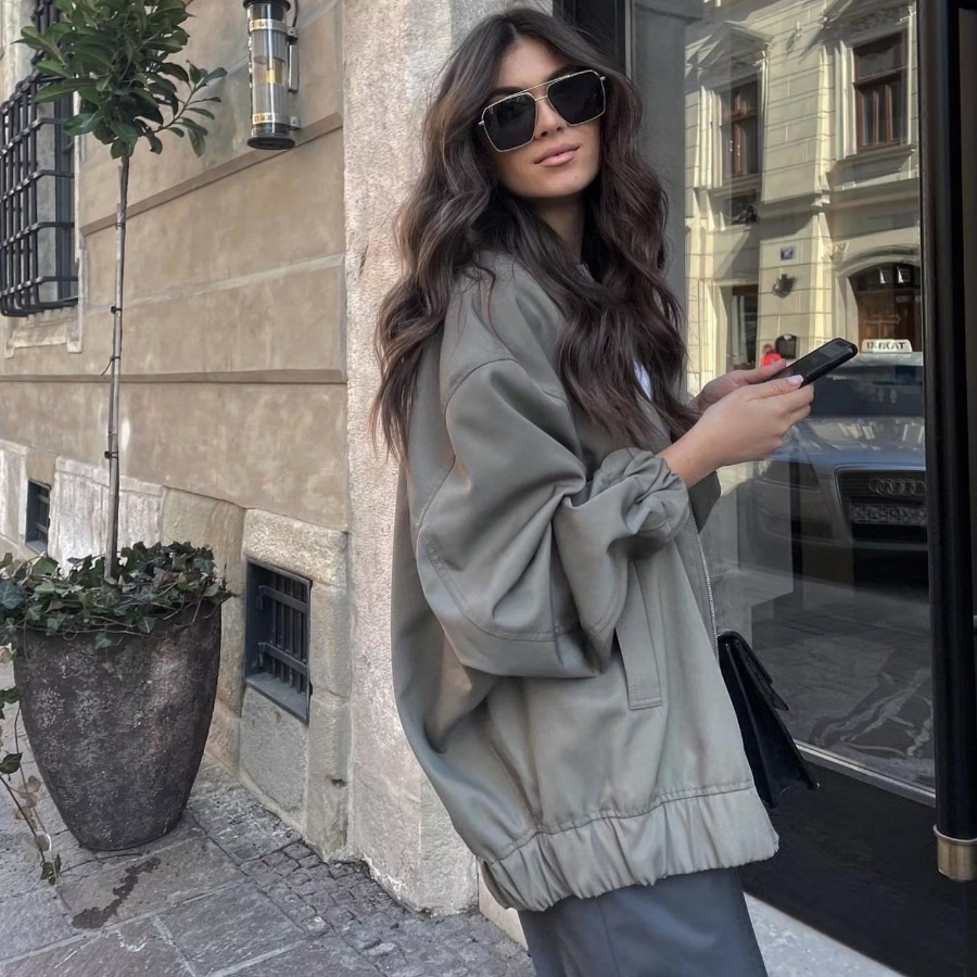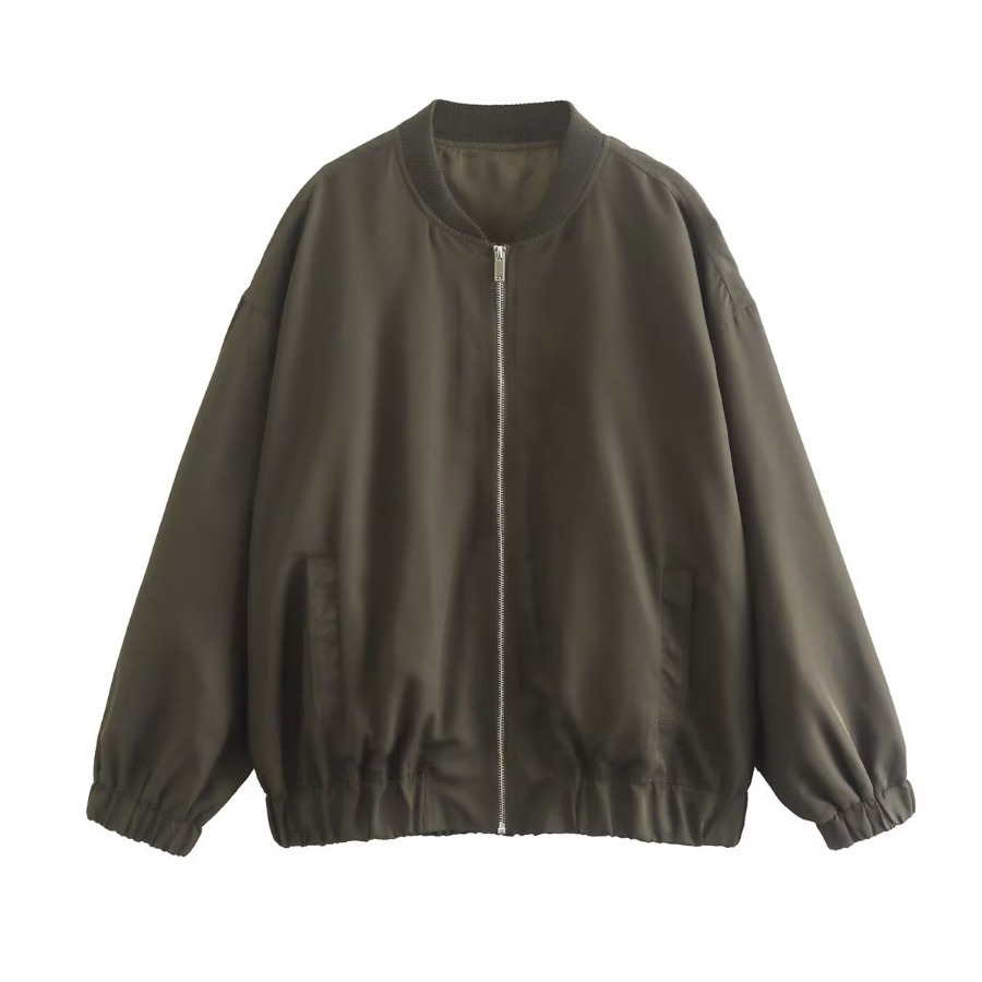 2022 가을 새로운 유럽과 미국 여성의 스탠드 칼라 느슨한 비행 솔리드 컬러 여성 자켓 패션 기질 코트 도매스토어 가기