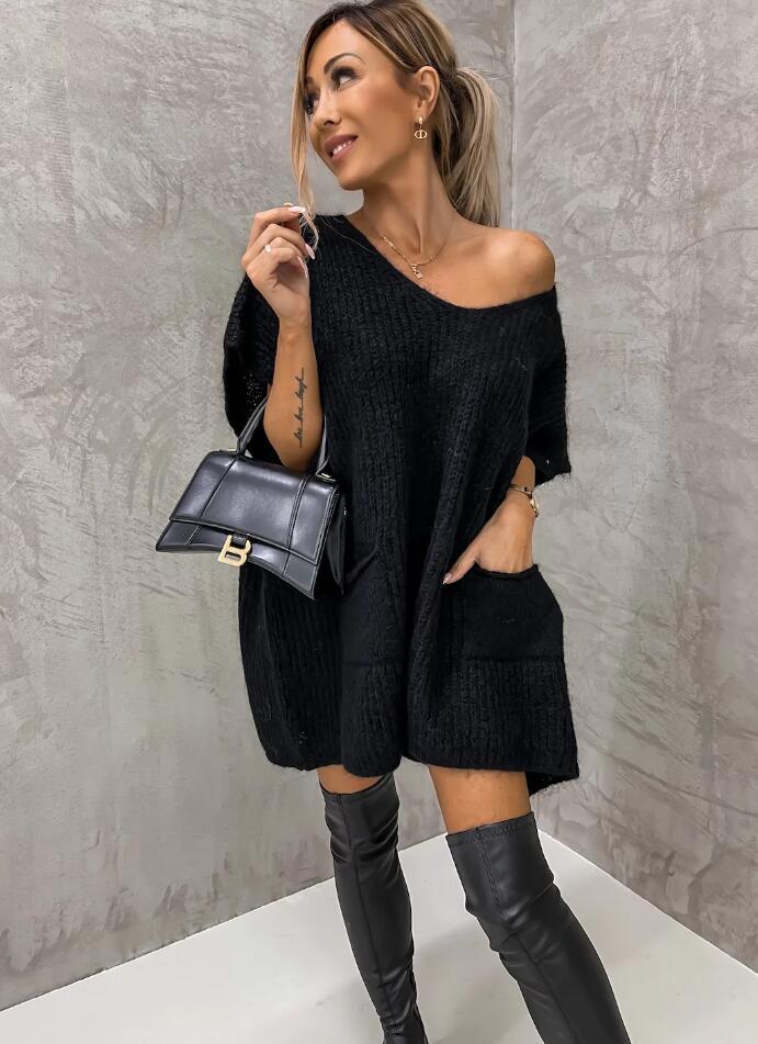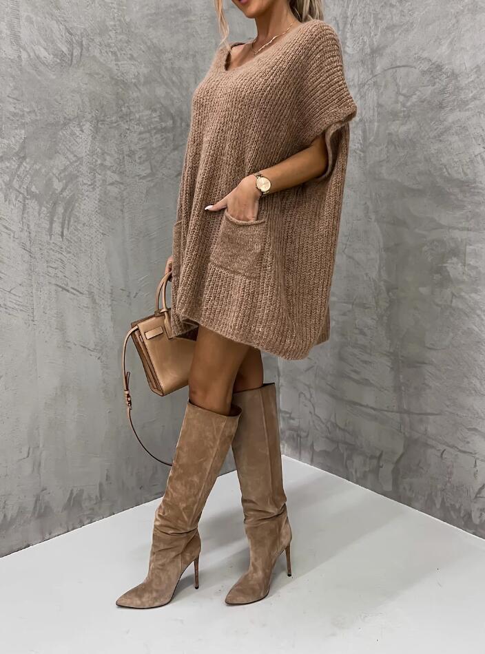2025 가을 겨울 신제품 유럽과 미국의 대외 무역 스웨터 여성 아마존 느슨한 대형 포켓 솔리드 컬러 v 넥 긴 소매