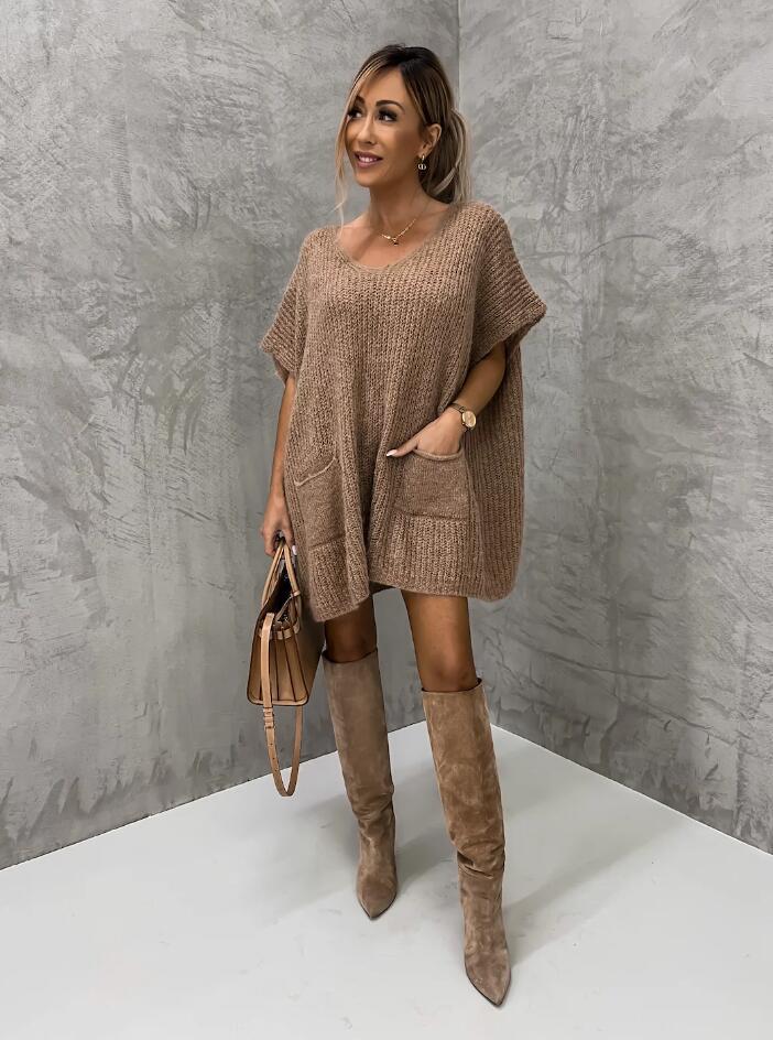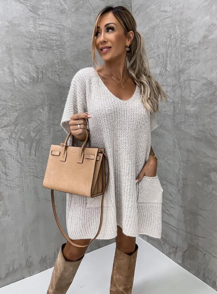 2025 가을 겨울 신제품 유럽과 미국의 대외 무역 스웨터 여성 아마존 느슨한 대형 포켓 솔리드 컬러 v 넥 긴 소매스토어 가기