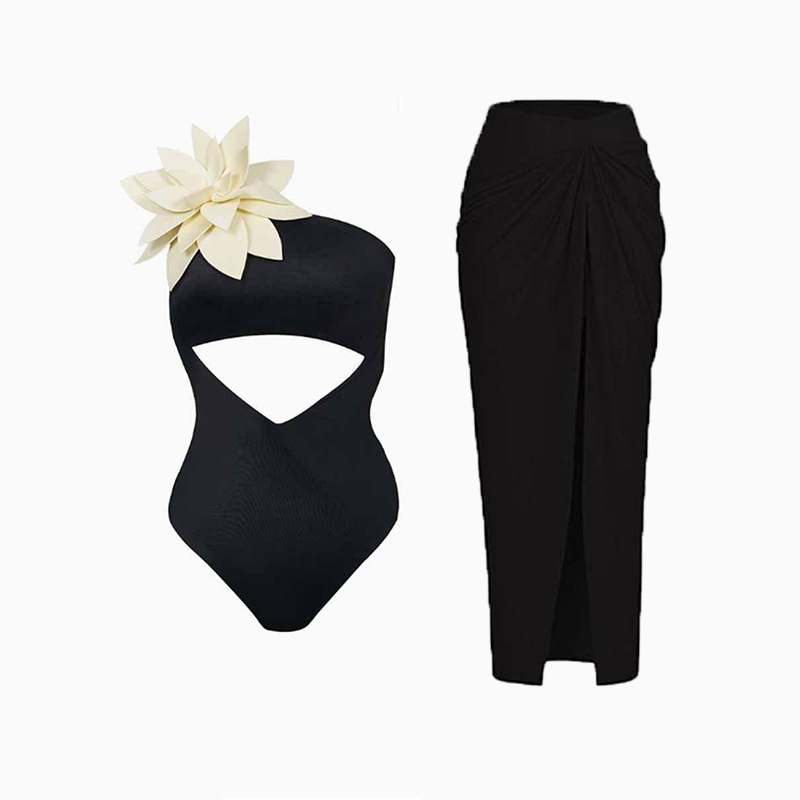 2024 새로운 유럽과 미국 패션 솔리드 컬러 섹시한 원 숄더 백리스 3 차원 꽃 원피스 브리프 여성 수영복