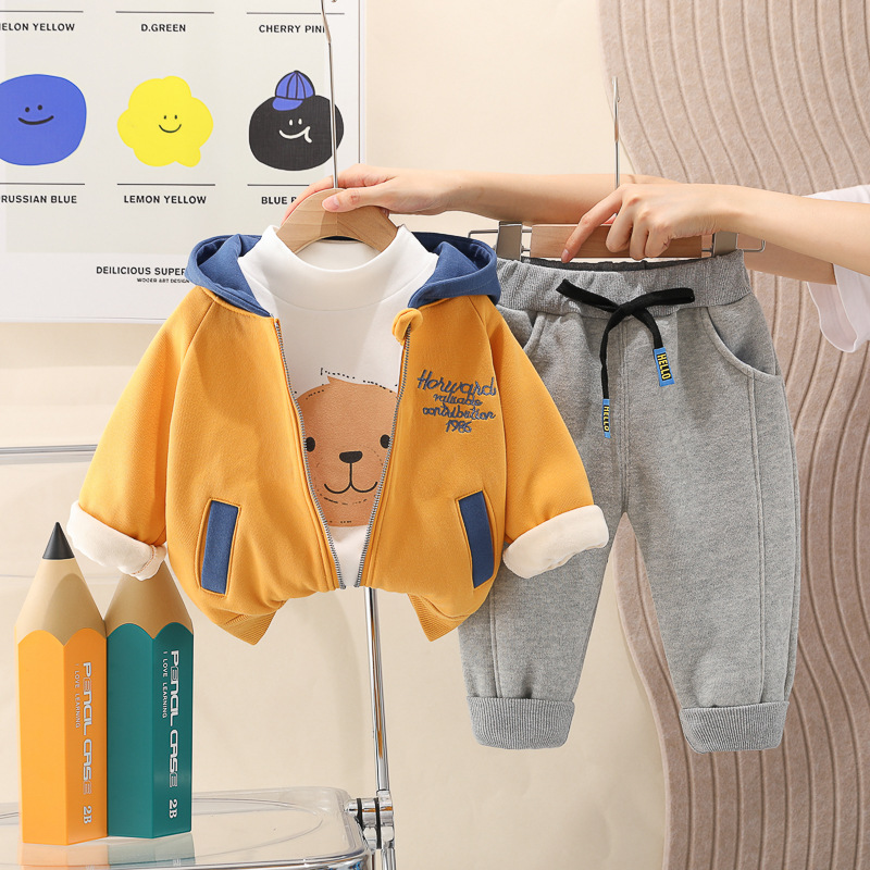 어린이 의류 소년 겨울 세트 2022 가을과 겨울 새로운 아동복 서양식 어린이 아기 기모 3 피스 세트 패션스토어 가기