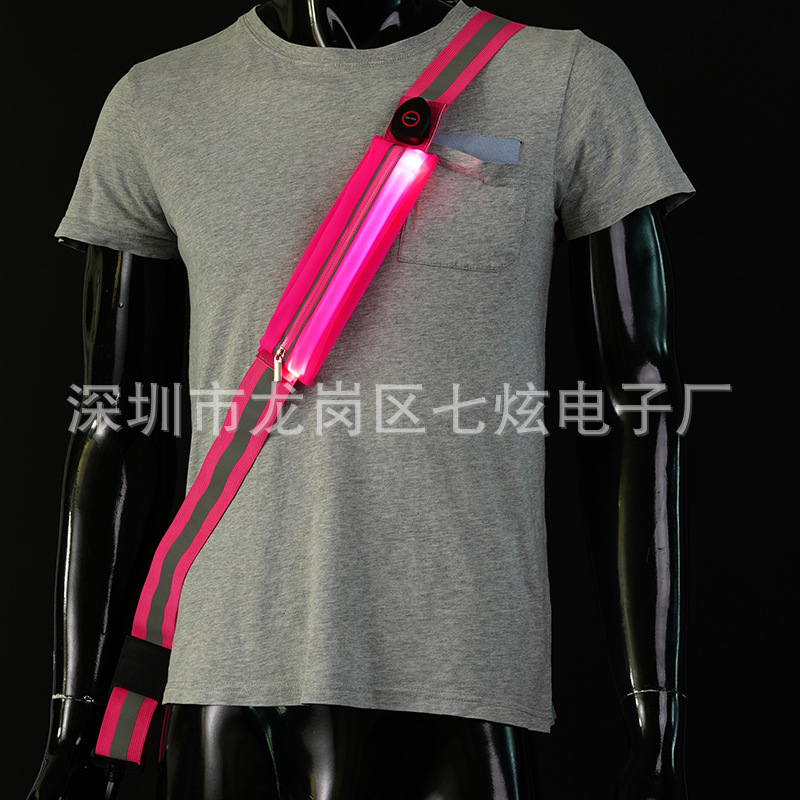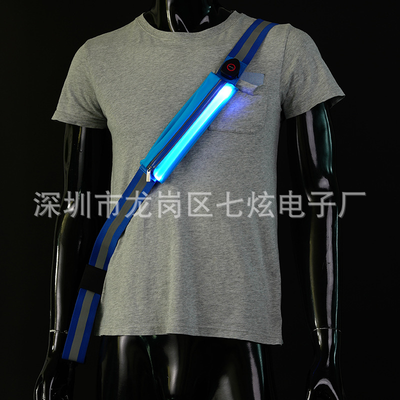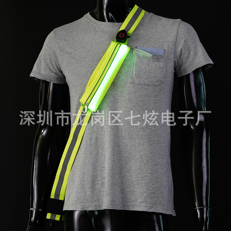 야간 러닝 안전 휴대폰 가방, USB 발광 후크, LED 발광 크로스백, 반사띠, 카라비너 플래시스토어 가기