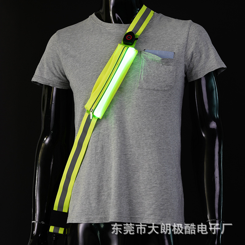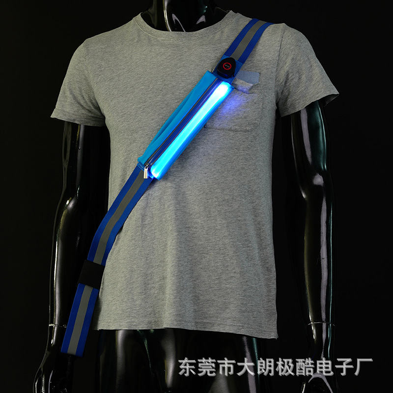 야간 실행 안전 반사 의류 스포츠 휴대 전화 가방 다기능 등산 버클 플래시 걸이 후크 LED 발광 크로스바디 백