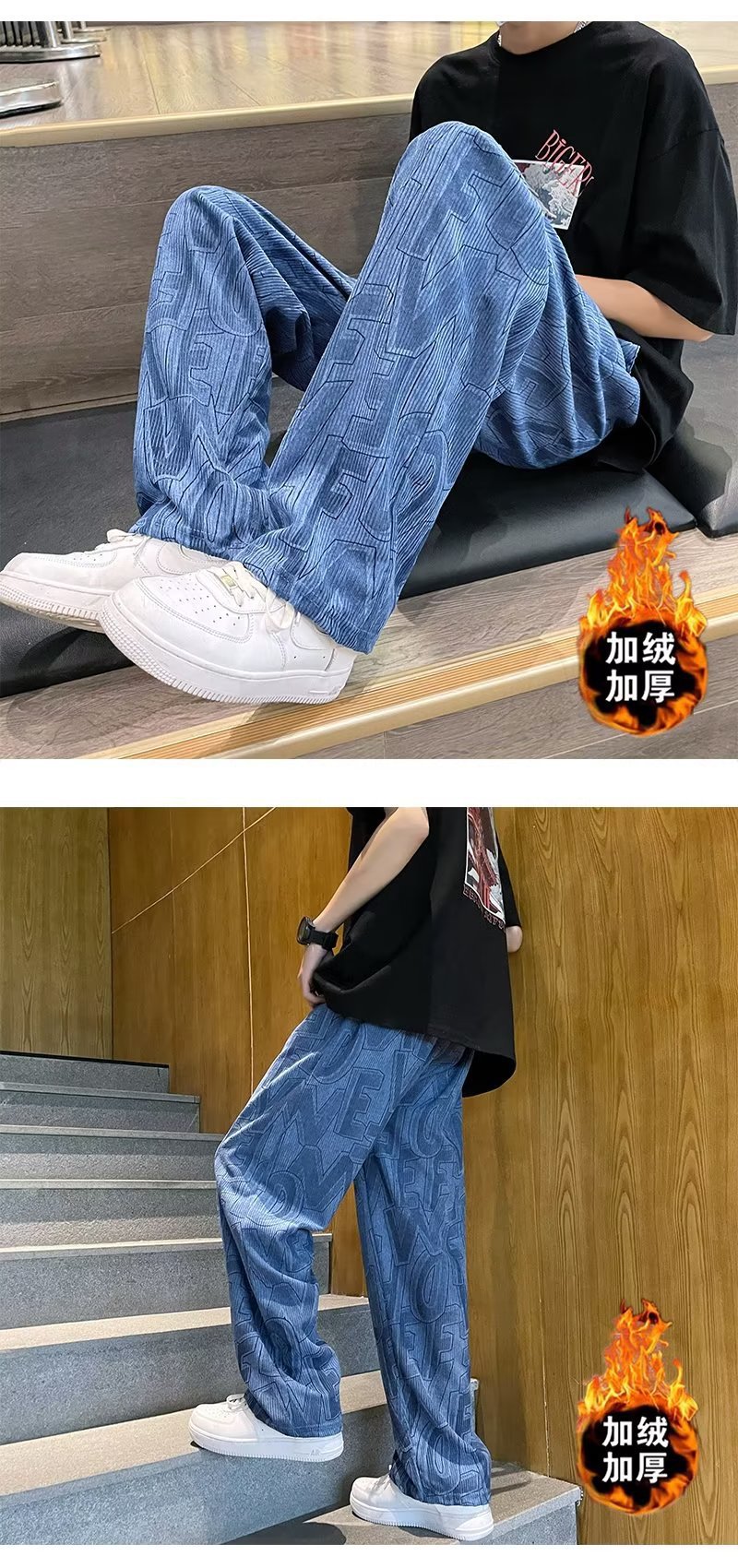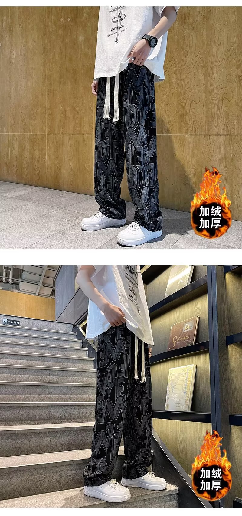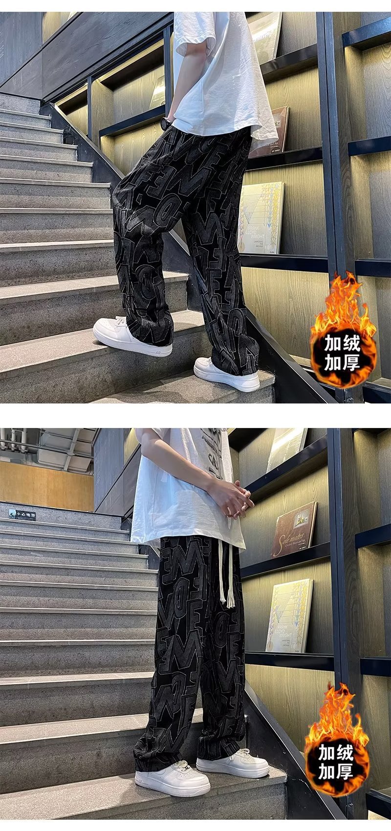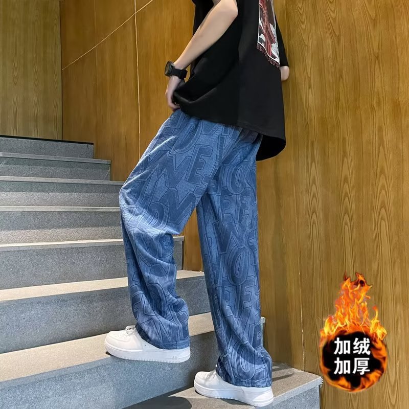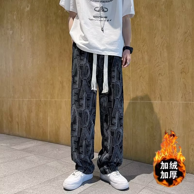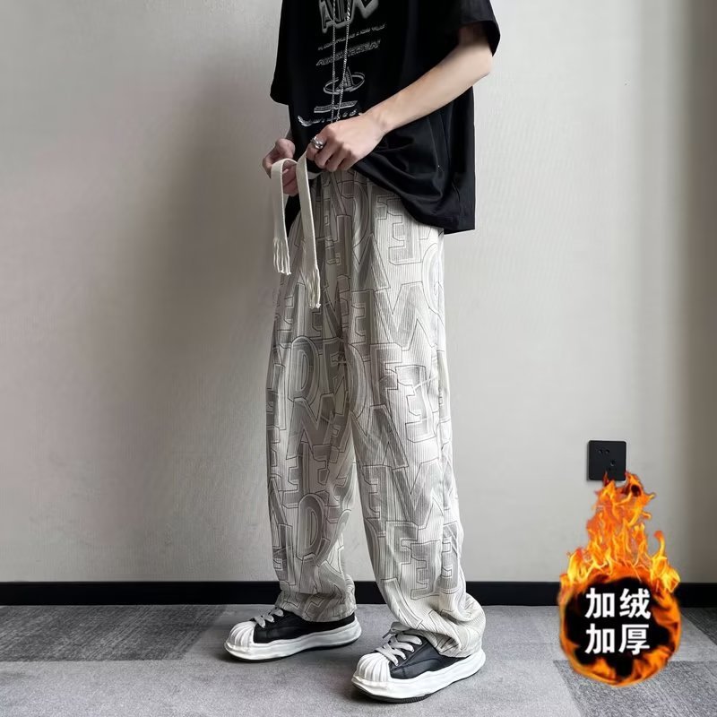 캐주얼 바지 남자의 예술적 느슨한 홍콩 스타일 일본 스타일 기모 가을과 겨울 유행 바지 프릴 패션 트렌디 브랜드 바지스토어 가기