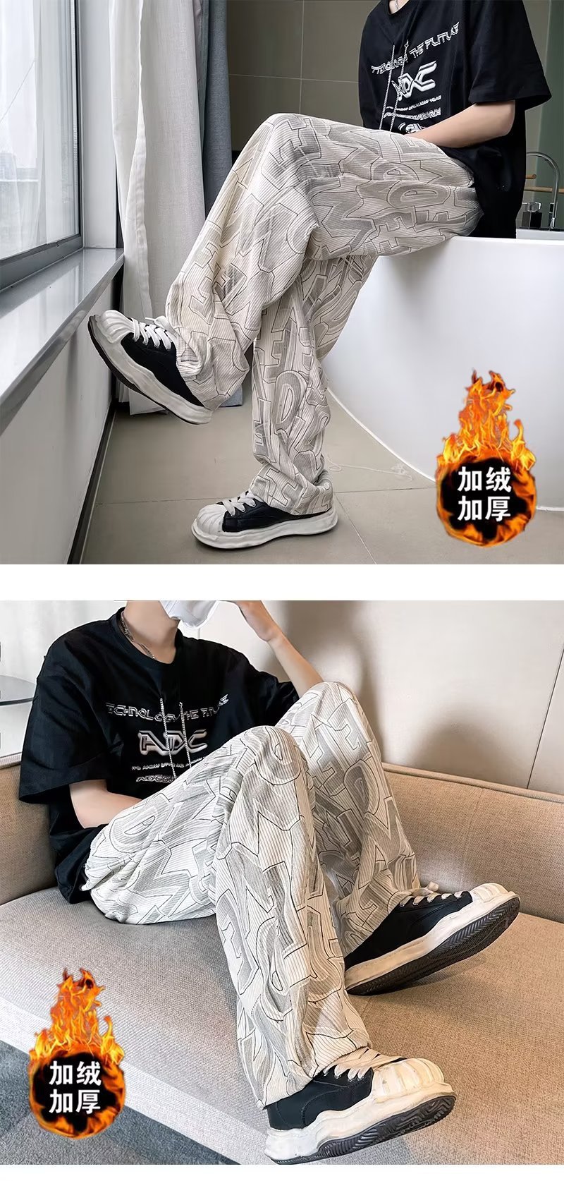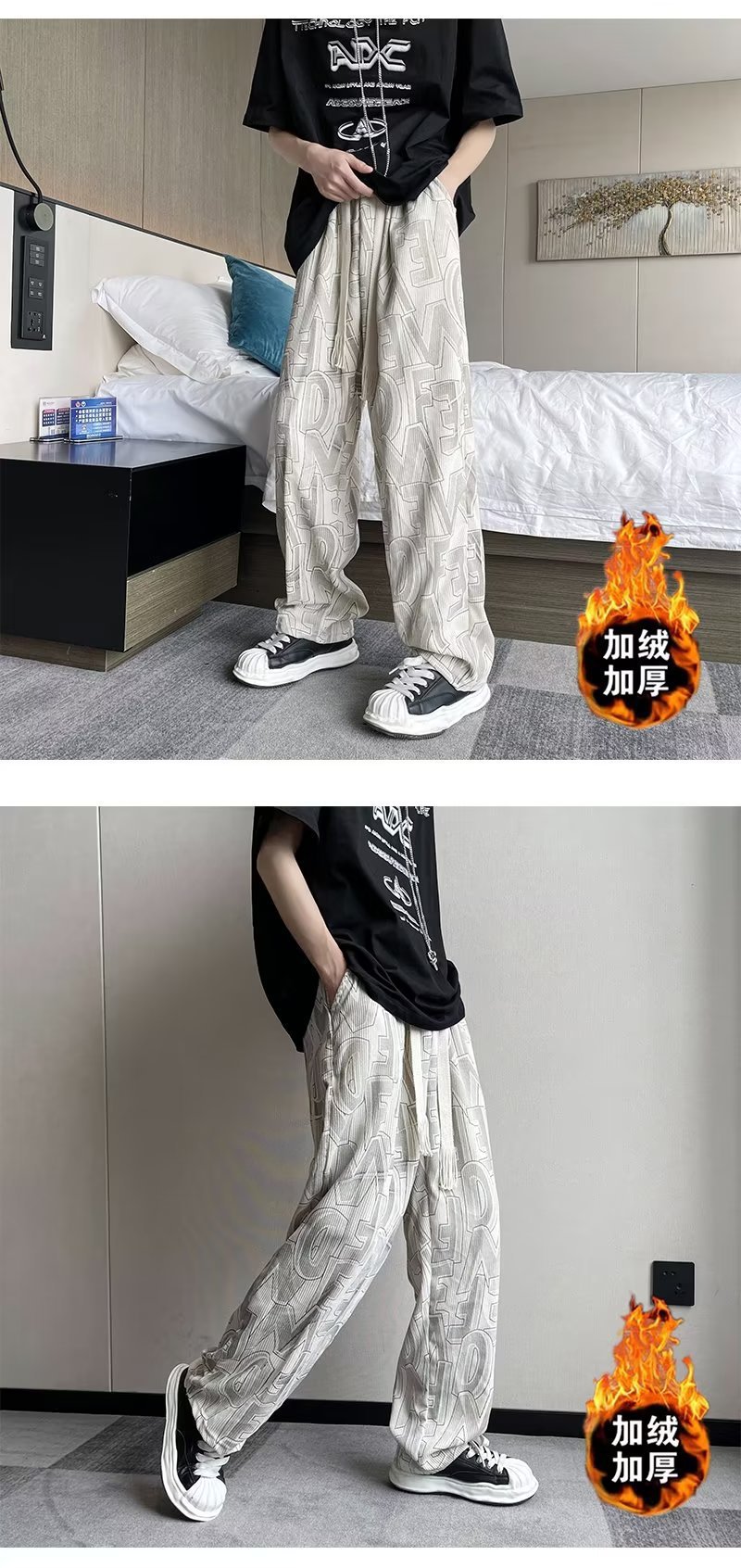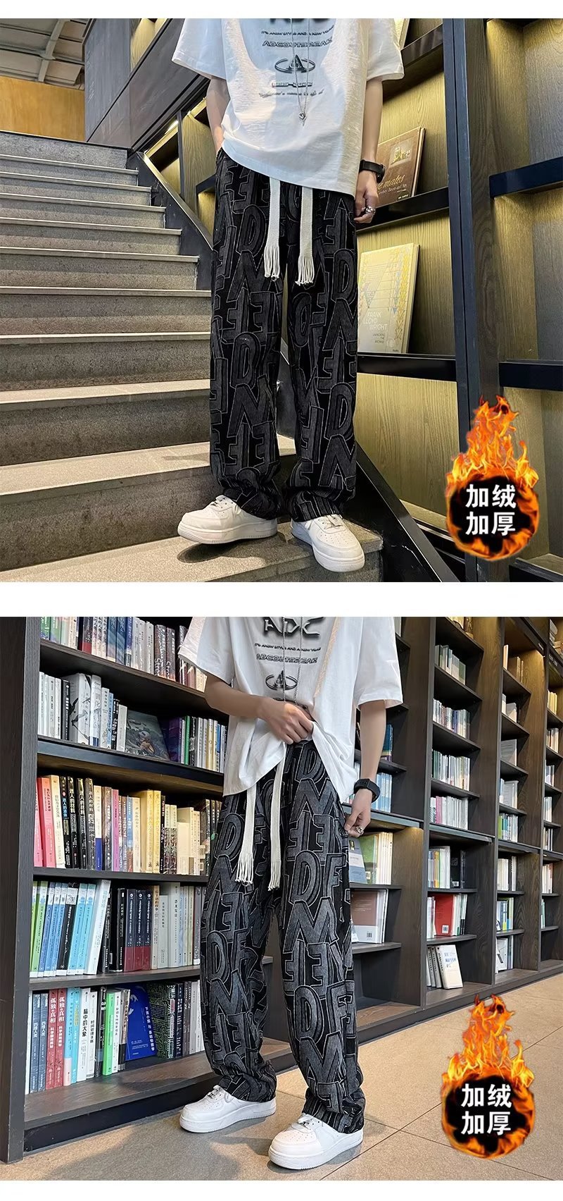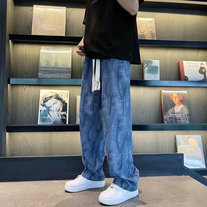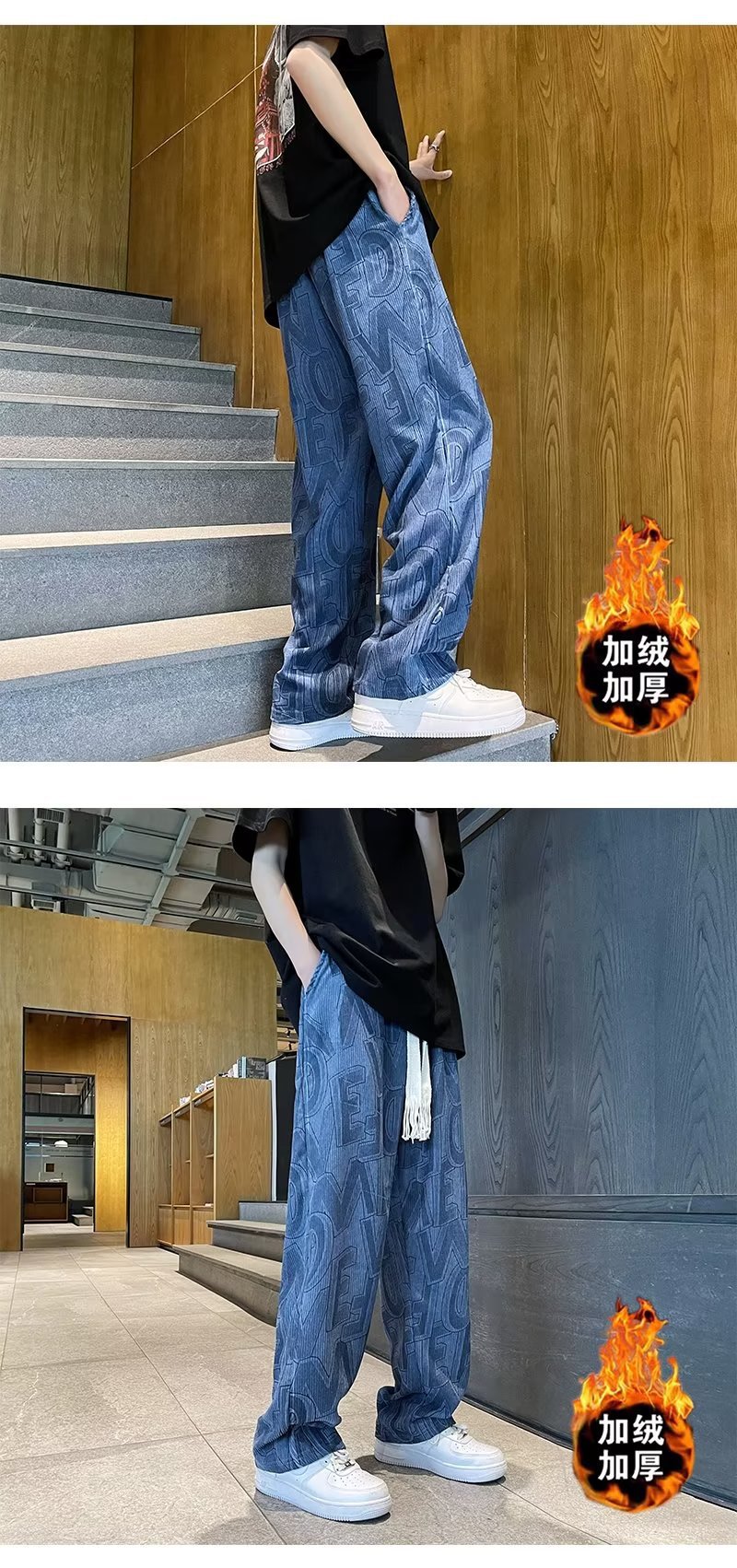 캐주얼 바지 남자의 예술적 느슨한 홍콩 스타일 일본 스타일 기모 가을과 겨울 유행 바지 프릴 패션 트렌디 브랜드 바지스토어 가기