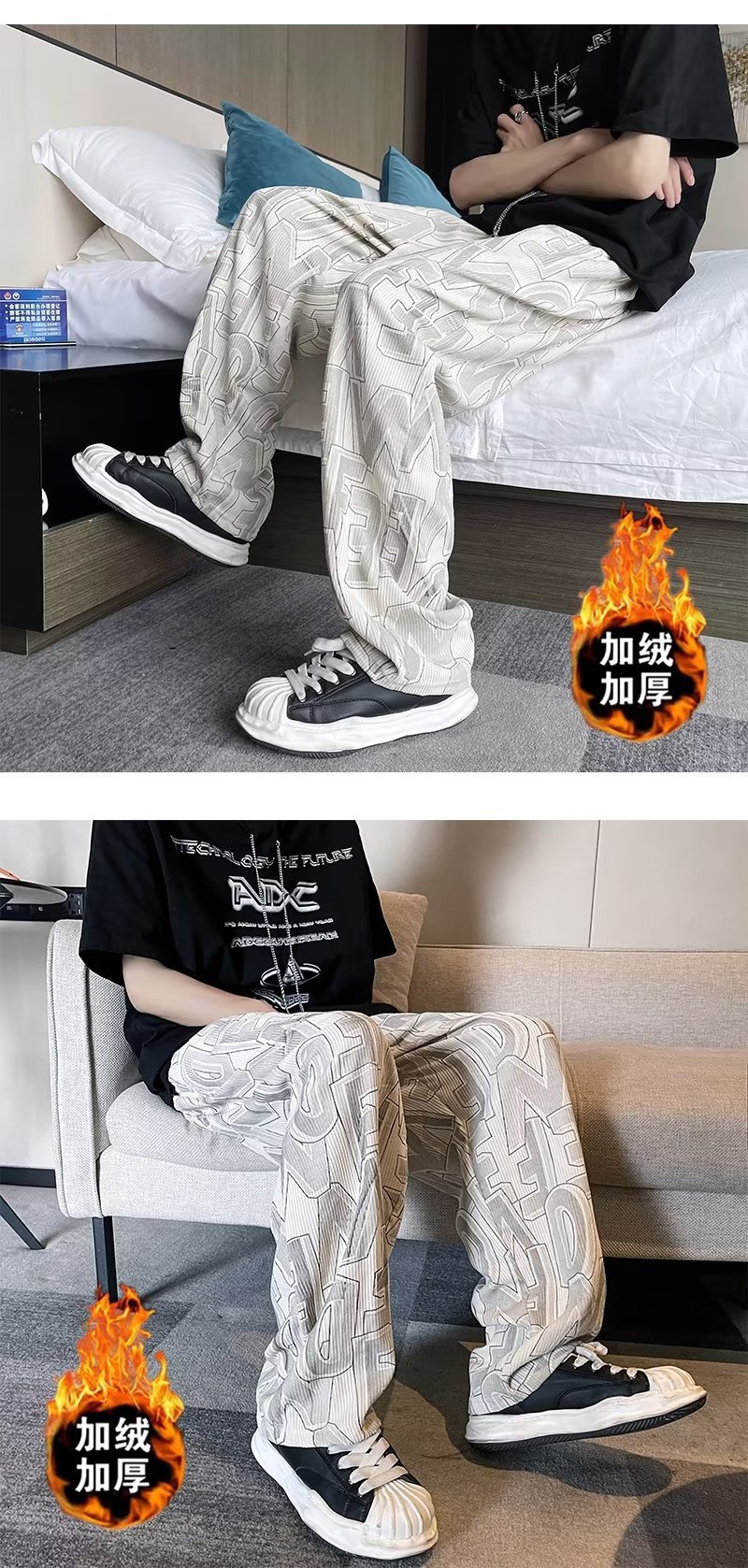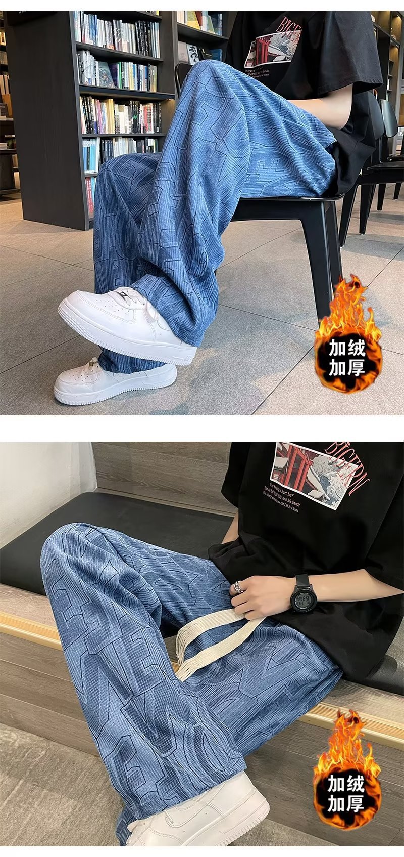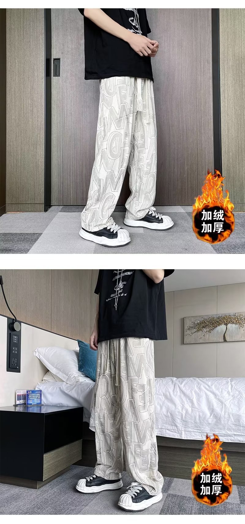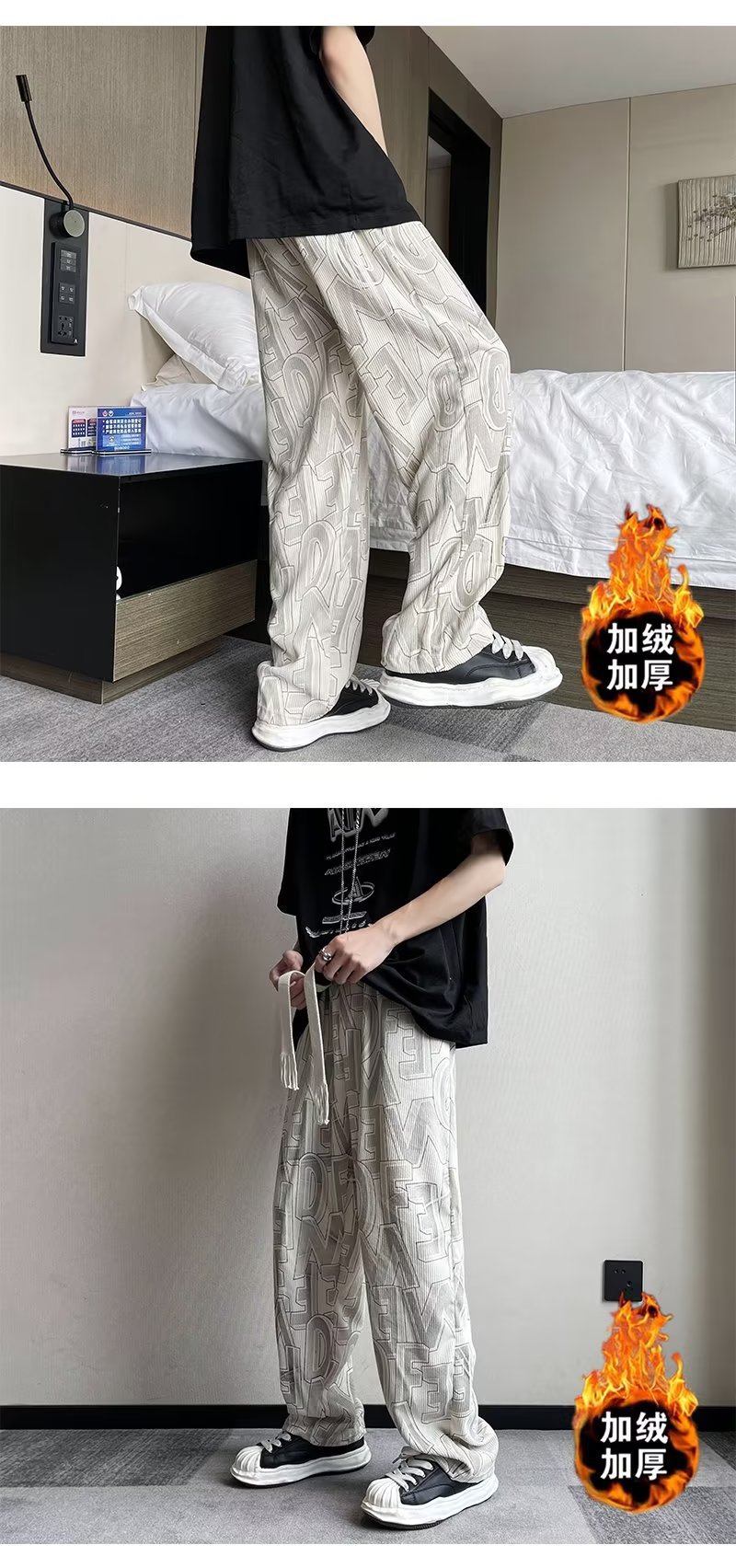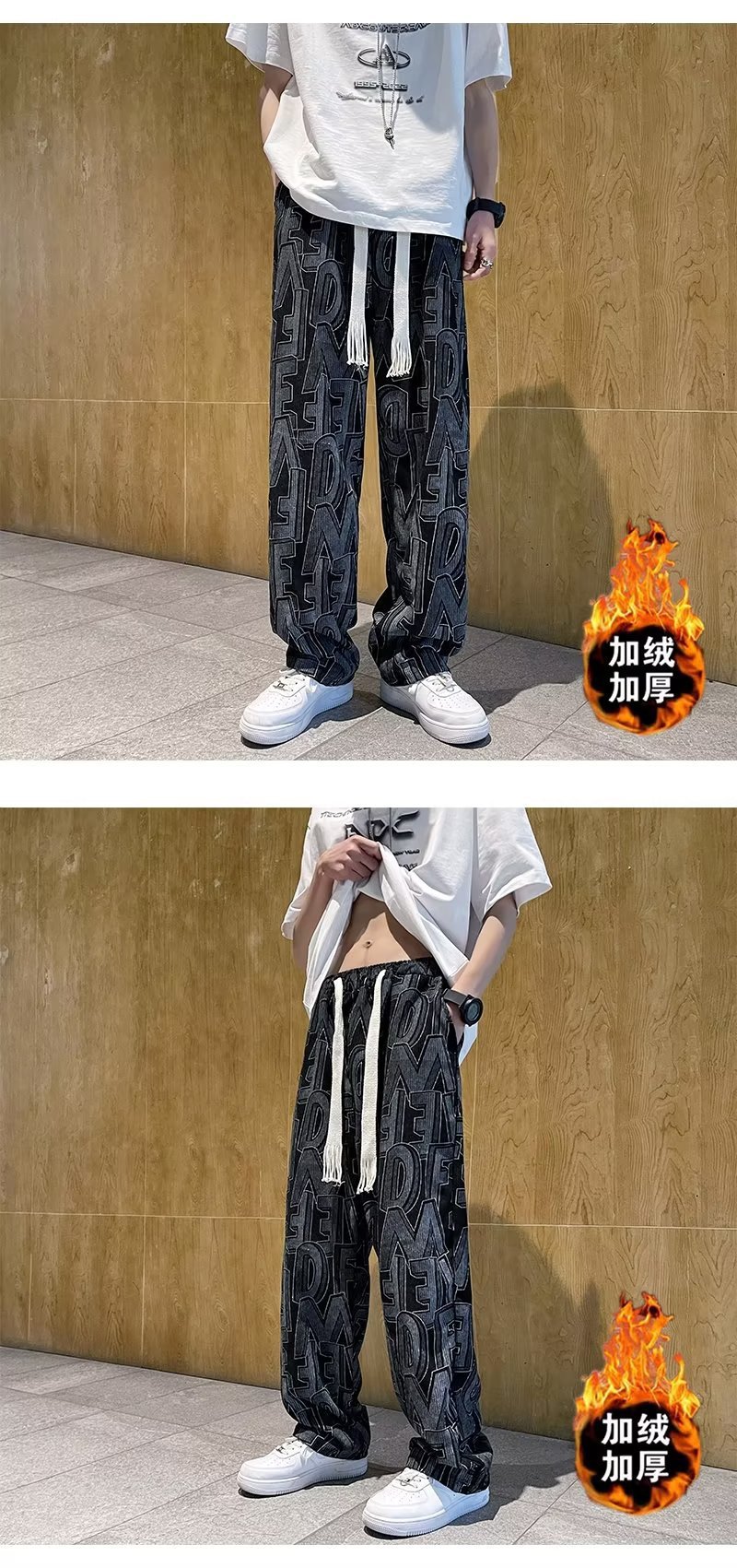 캐주얼 바지 남자의 예술적 느슨한 홍콩 스타일 일본 스타일 기모 가을과 겨울 유행 바지 프릴 패션 트렌디 브랜드 바지스토어 가기