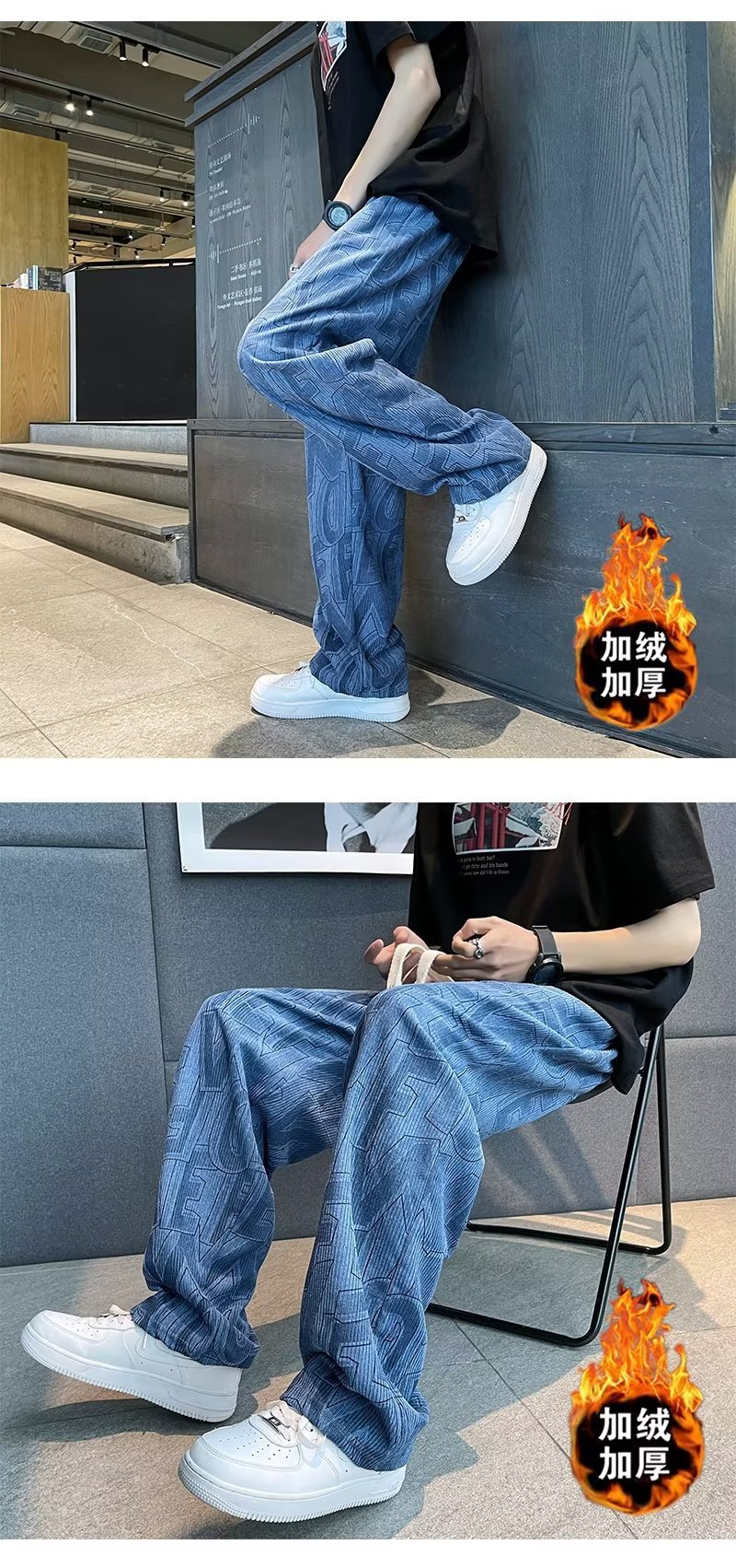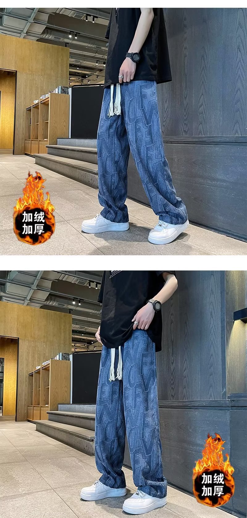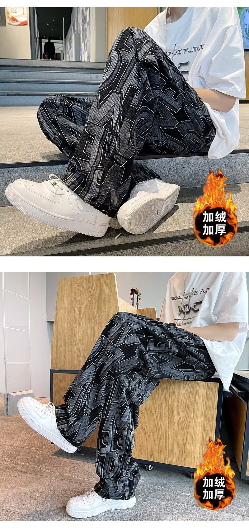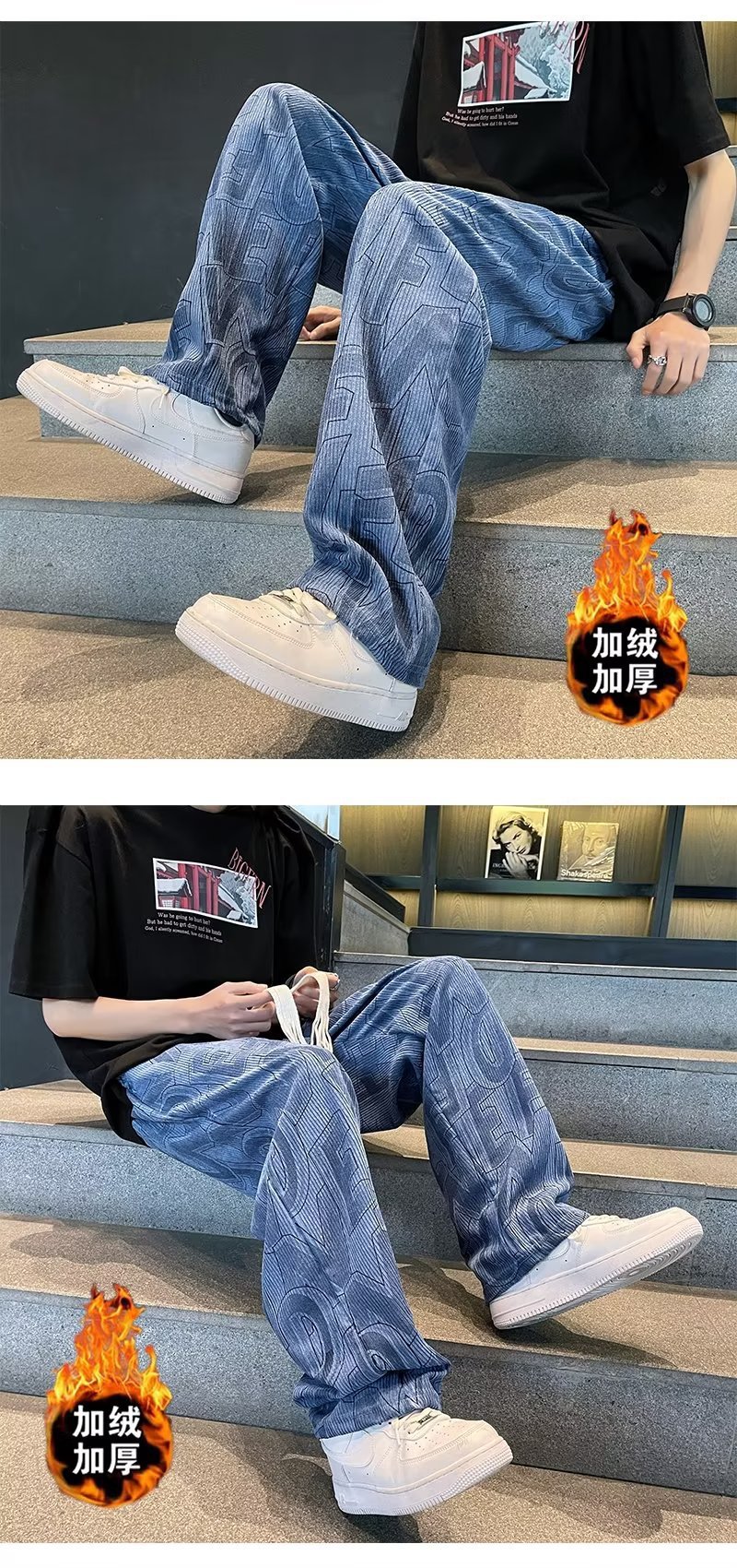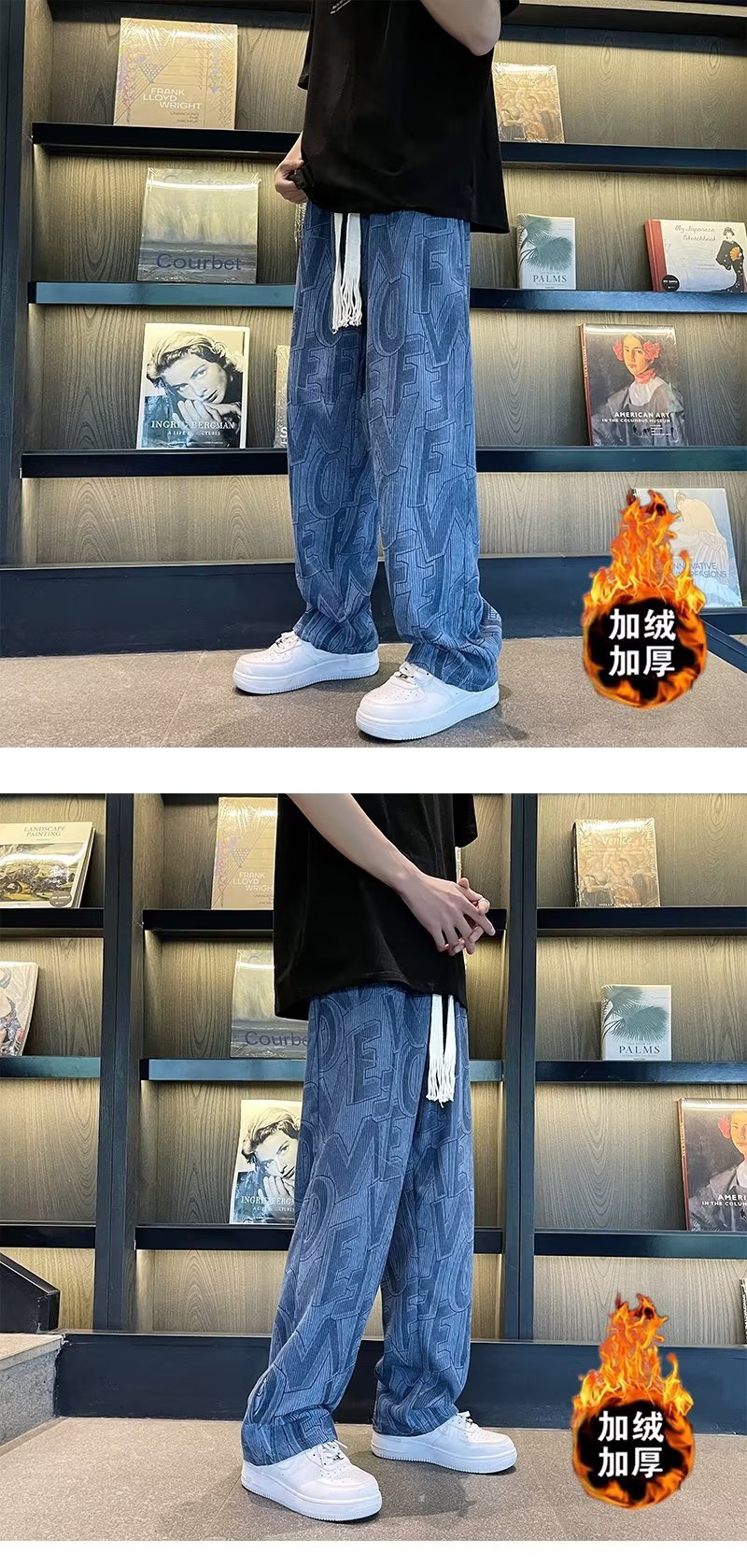 캐주얼 바지 남자의 예술적 느슨한 홍콩 스타일 일본 스타일 기모 가을과 겨울 유행 바지 프릴 패션 트렌디 브랜드 바지스토어 가기