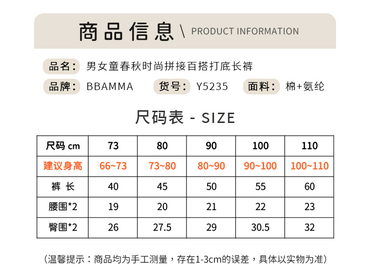 아기 봄 스타일 배색 레깅스 한국 아동복 유아용 외출용 긴바지 아기옷 가을 캐주얼 바지스토어 가기