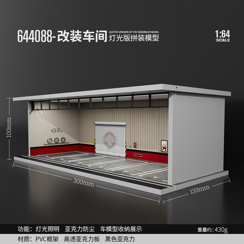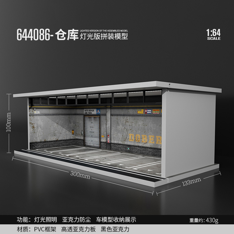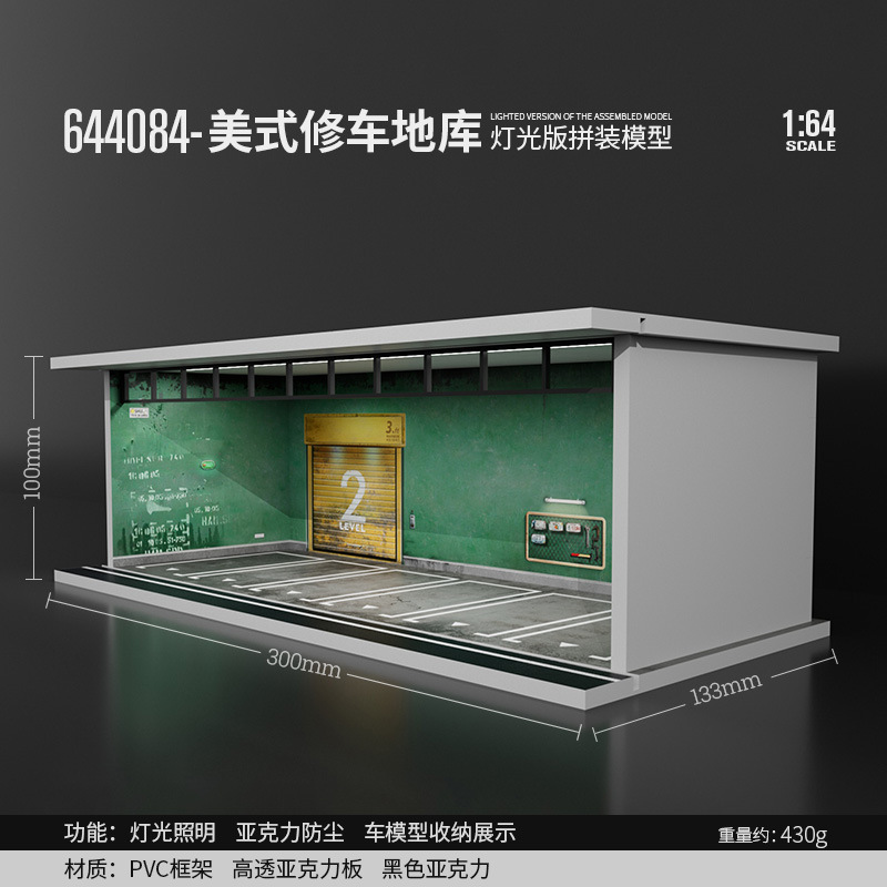 주차장 모델 장면 1:64 시뮬레이션 합금 자동차 모델 장난감 차고 저장 방진 조명 장식품스토어 가기
