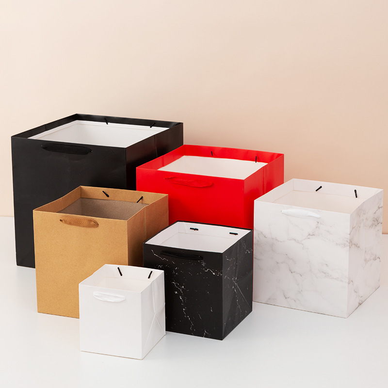 사용자 정의 대리석 대형 넓은 바닥 종이 가방 생일 사각형 핸드백 작은 배치 흰색 판지 케이크 상자 선물 가방