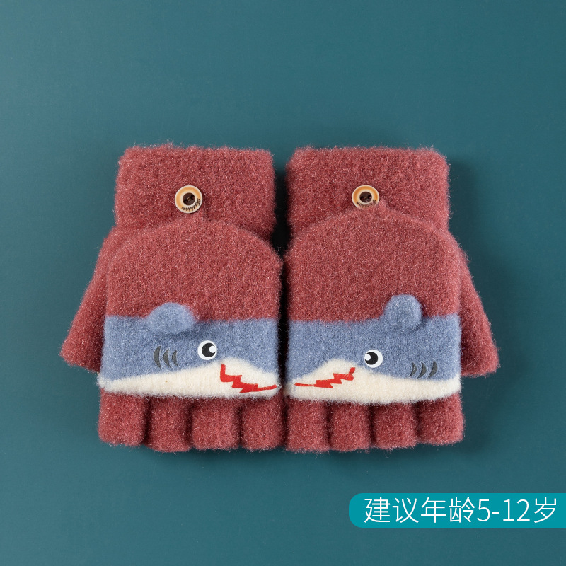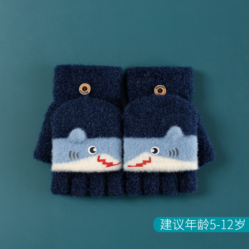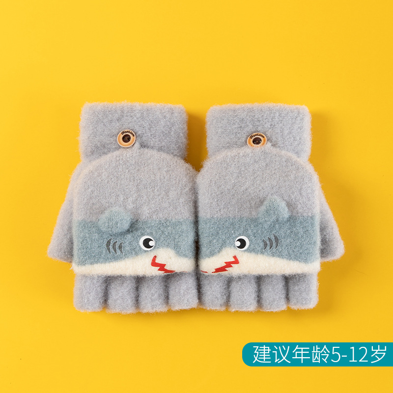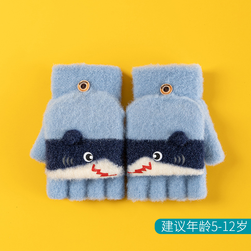 스노우 쇼 어린이 따뜻한 장갑 귀여운 상어 만화 니트 겨울 5-12 세 어린이 필기 장갑 도매스토어 가기