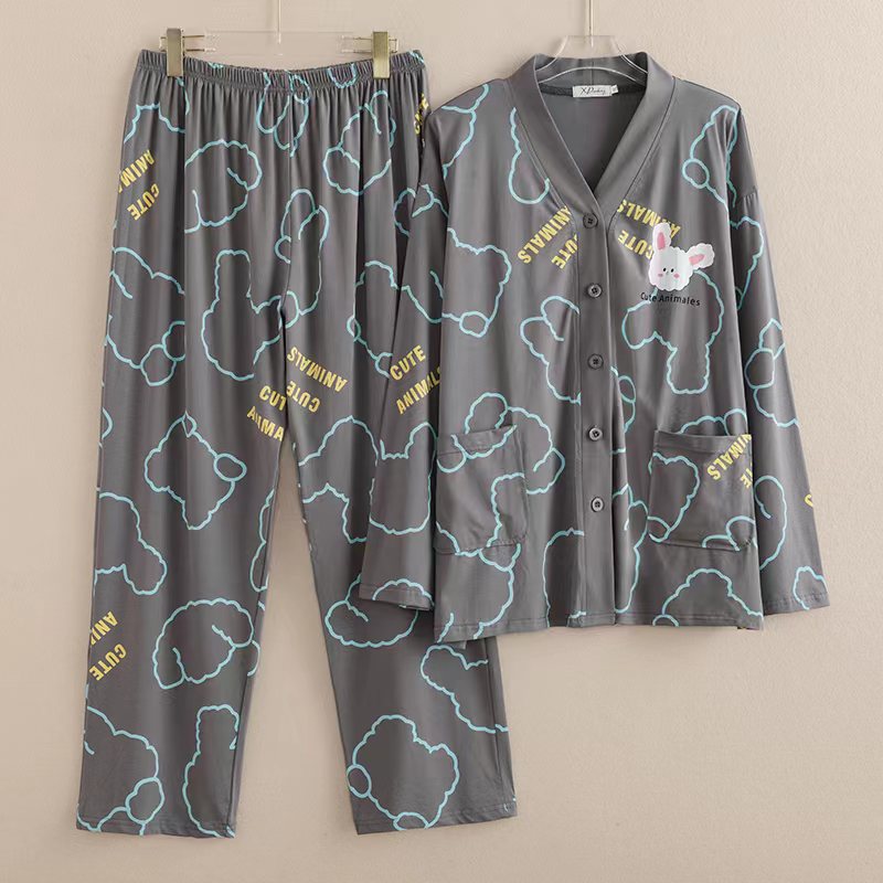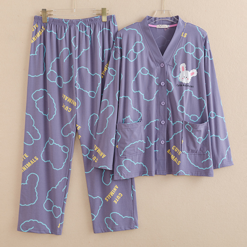 숙녀 만화 잠옷 가을과 겨울 니트 코튼 긴 소매 바지 홈 의류 V 넥 카디건 플러스 사이즈 스몰 사이즈 세트 도매스토어 가기