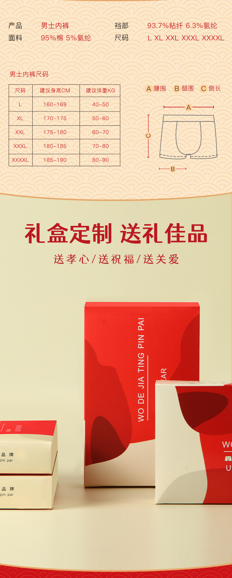 브림 니안 남자 속옷 퓨어 코튼 박테리아 바텀 크로치 바지 빅 레드 웨딩 복서 팬티 남자 용의 해