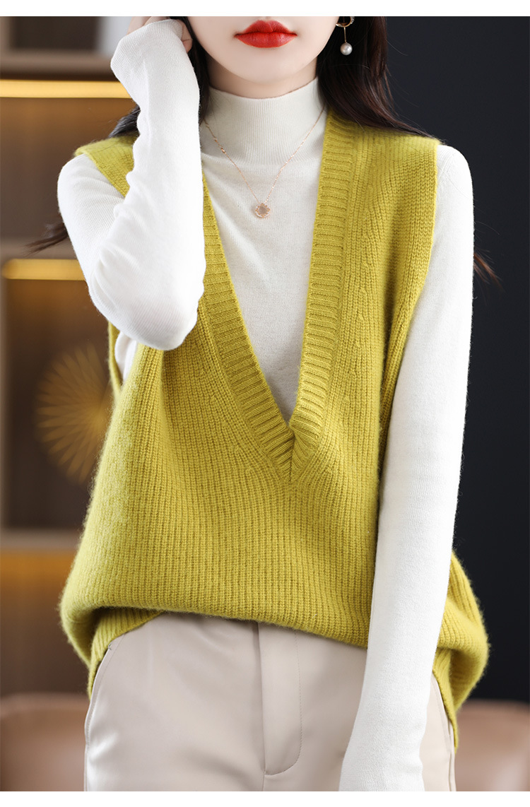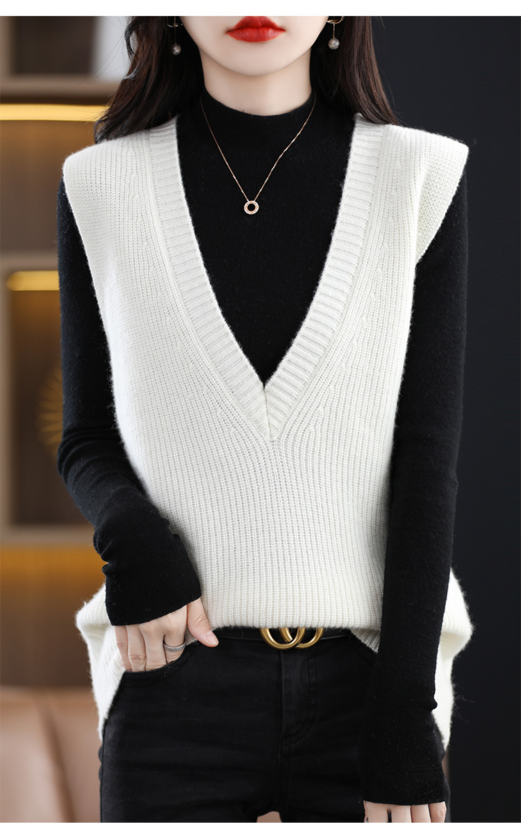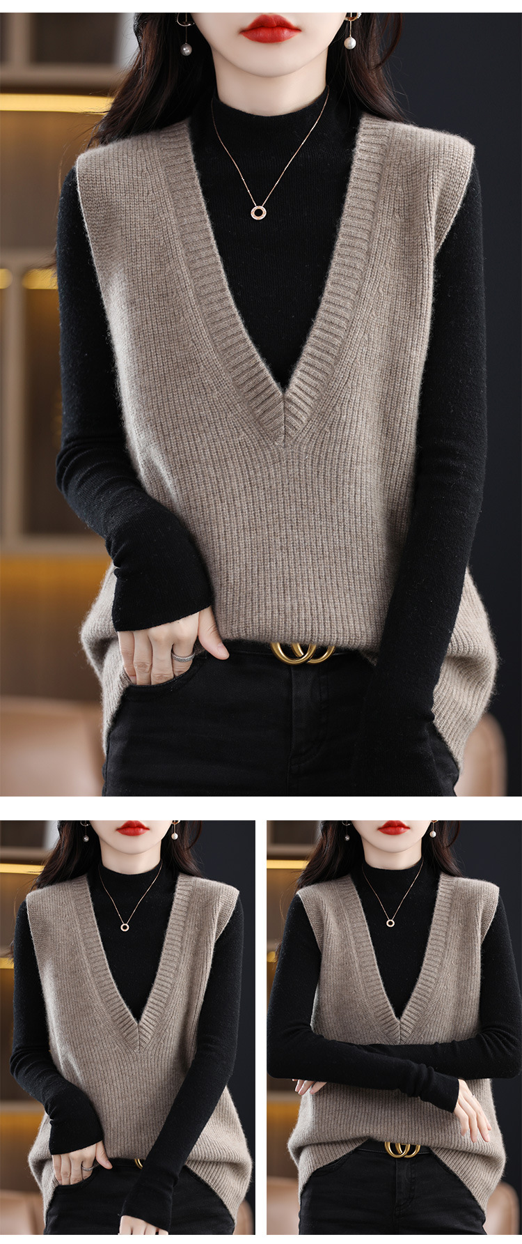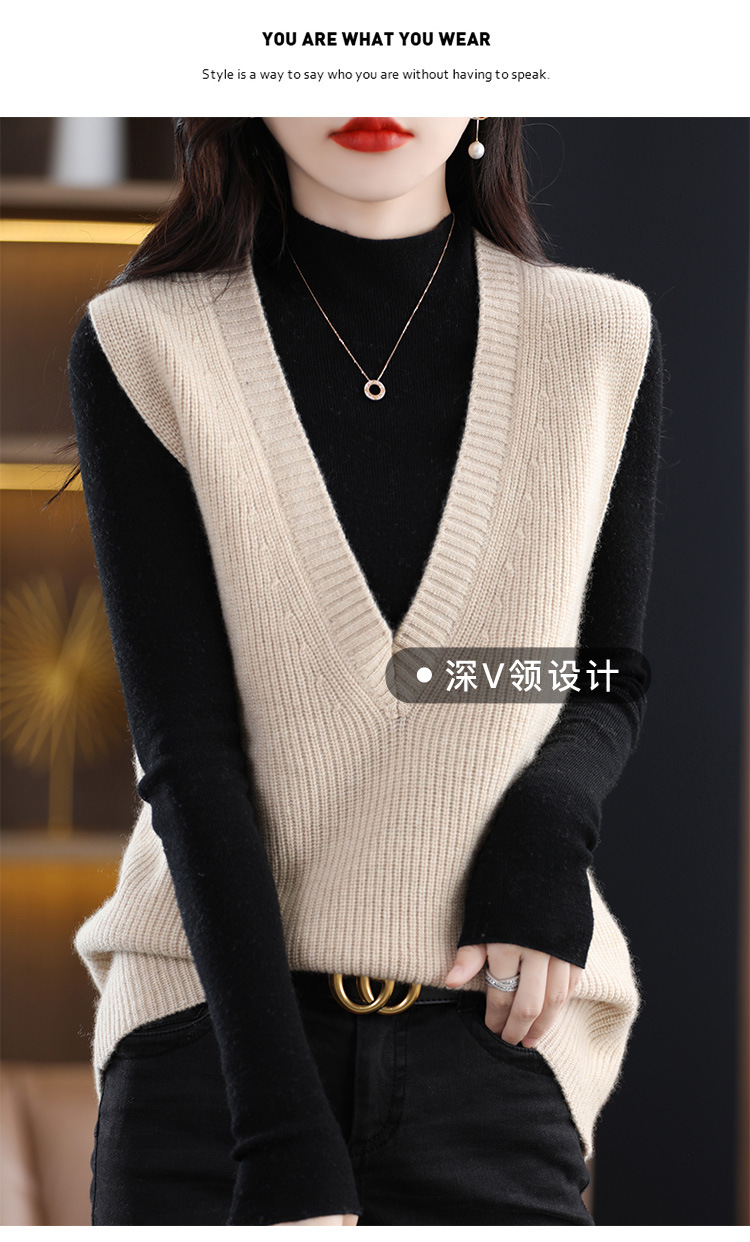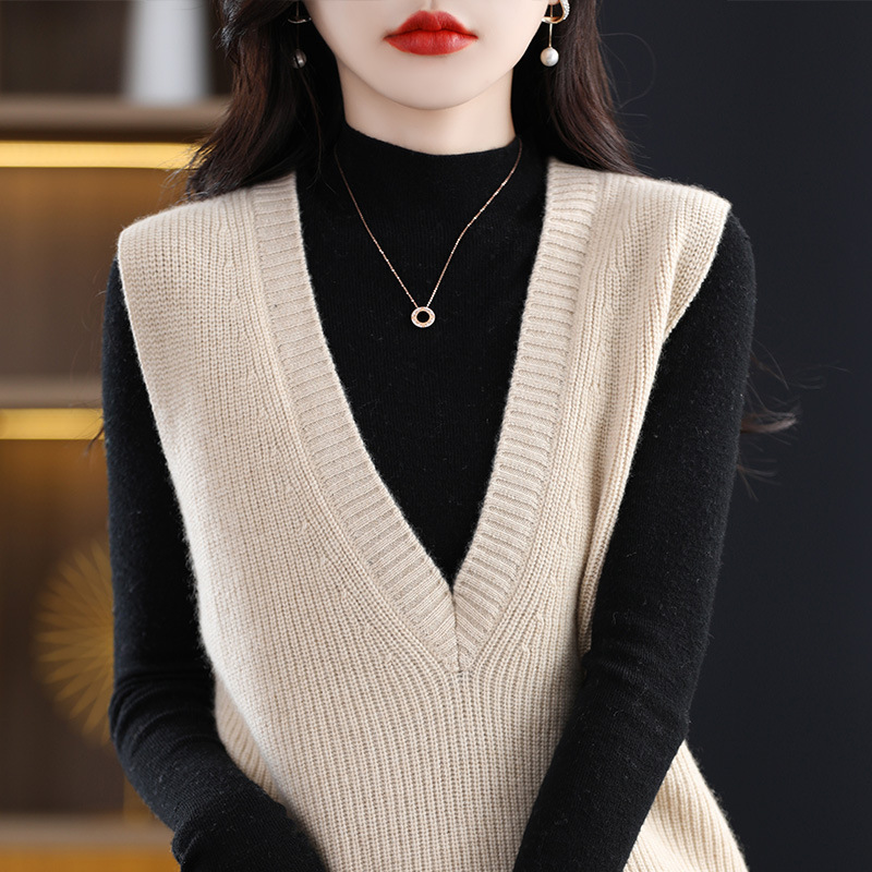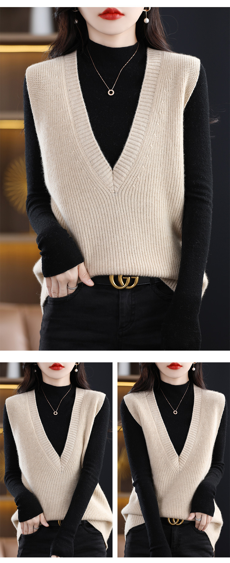 가을과 겨울 새로운 V-넥 조끼 민소매 풀오버 스웨터 니트 조끼 조끼 느슨한 게으른 스타일 탑